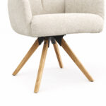 Der Armlehnstuhl Evania von Natura Home beeindruckt durch seine elegante, cremefarbene Stoffpolsterung und die robuste Konstruktion aus massivem Eichenholz. Mit einer Belastbarkeit von ca. 115 kg und einer Sitzhöhe von ca. 50 cm bietet er stabilen Komfort. Die stativförmigen Beine in Holzoptik verleihen dem Stuhl eine zeitlose Ästhetik. Die integrierte Dreh- und Relax-Funktion sorgt für ein entspanntes Sitzerlebnis. Evania kombiniert Stil und Funktionalität, um deinem Raum einen Hauch von Eleganz zu verleihen. Perfekt für diejenigen, die Wert auf Qualität und Design legen.