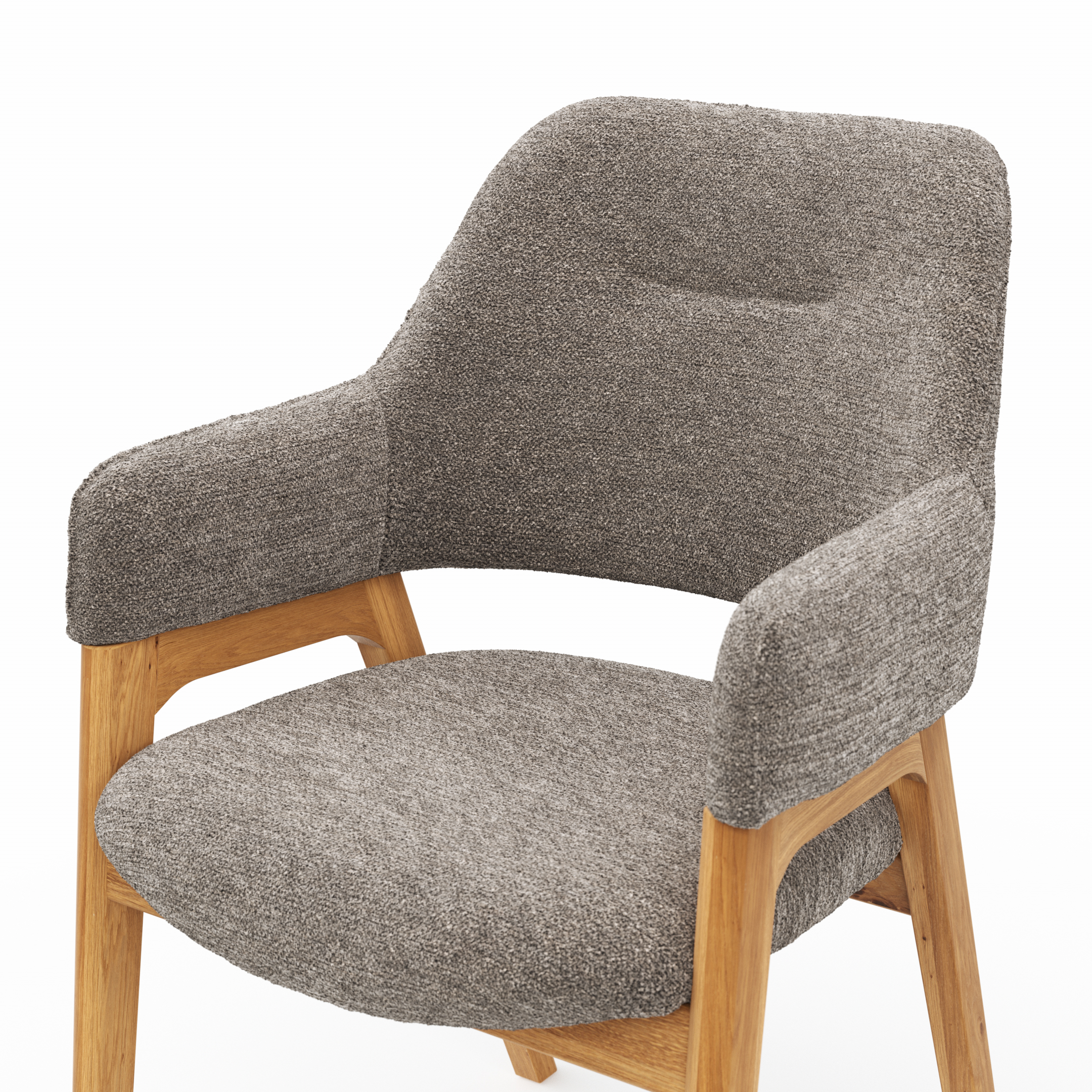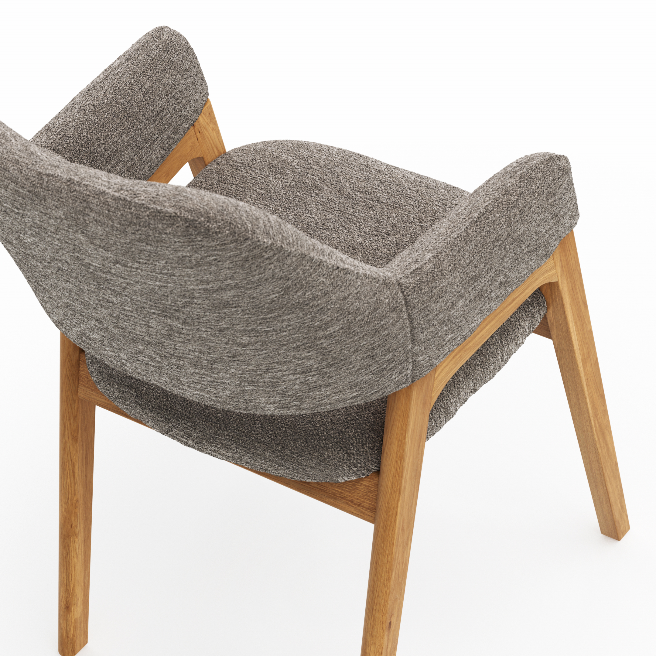 Erlebe den luxuriösen Komfort des Armlehnstuhls Flore 1 von Natura Home. Mit einer Belastbarkeit von ca. 120 kg und einer Sitzhöhe von ca. 49 cm bietet dieser Stuhl Stabilität und Bequemlichkeit. Die massive Wildeiche in Holzfarbe verleiht den vier Füßen Eleganz und Natürlichkeit. Der Sitz und die Rückenlehne aus hochwertigem Schaumstoff versprechen langanhaltenden Sitzkomfort. Der edle Bronze-Stoff rundet das Design stilvoll ab und macht diesen Stuhl zu einem Highlight in jedem Raum. Ideal für alle, die Wert auf Qualität und Stil legen.