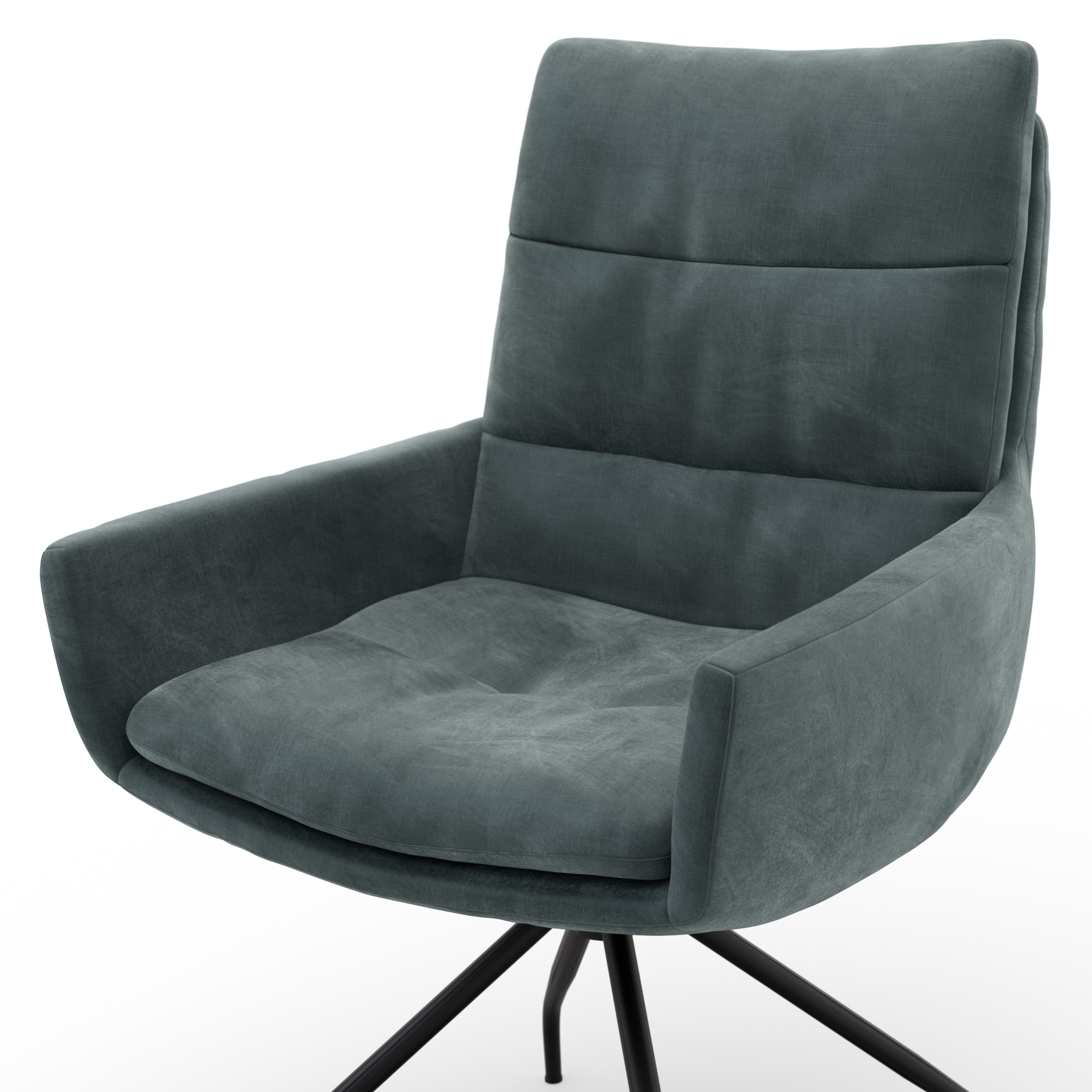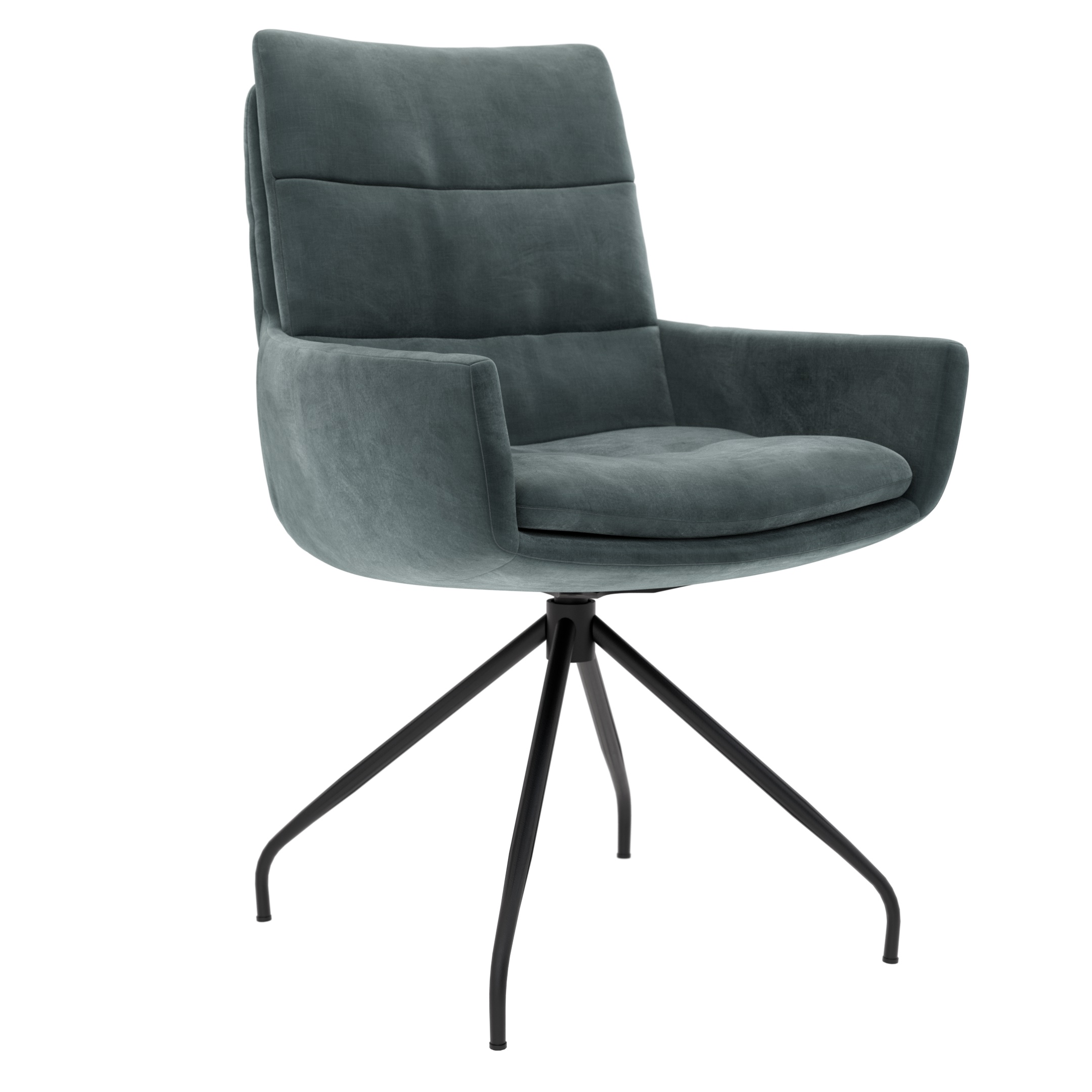 Armlehnstuhl Jukka – Stoff, Jade, Stativ, Schwarz, Drehbar