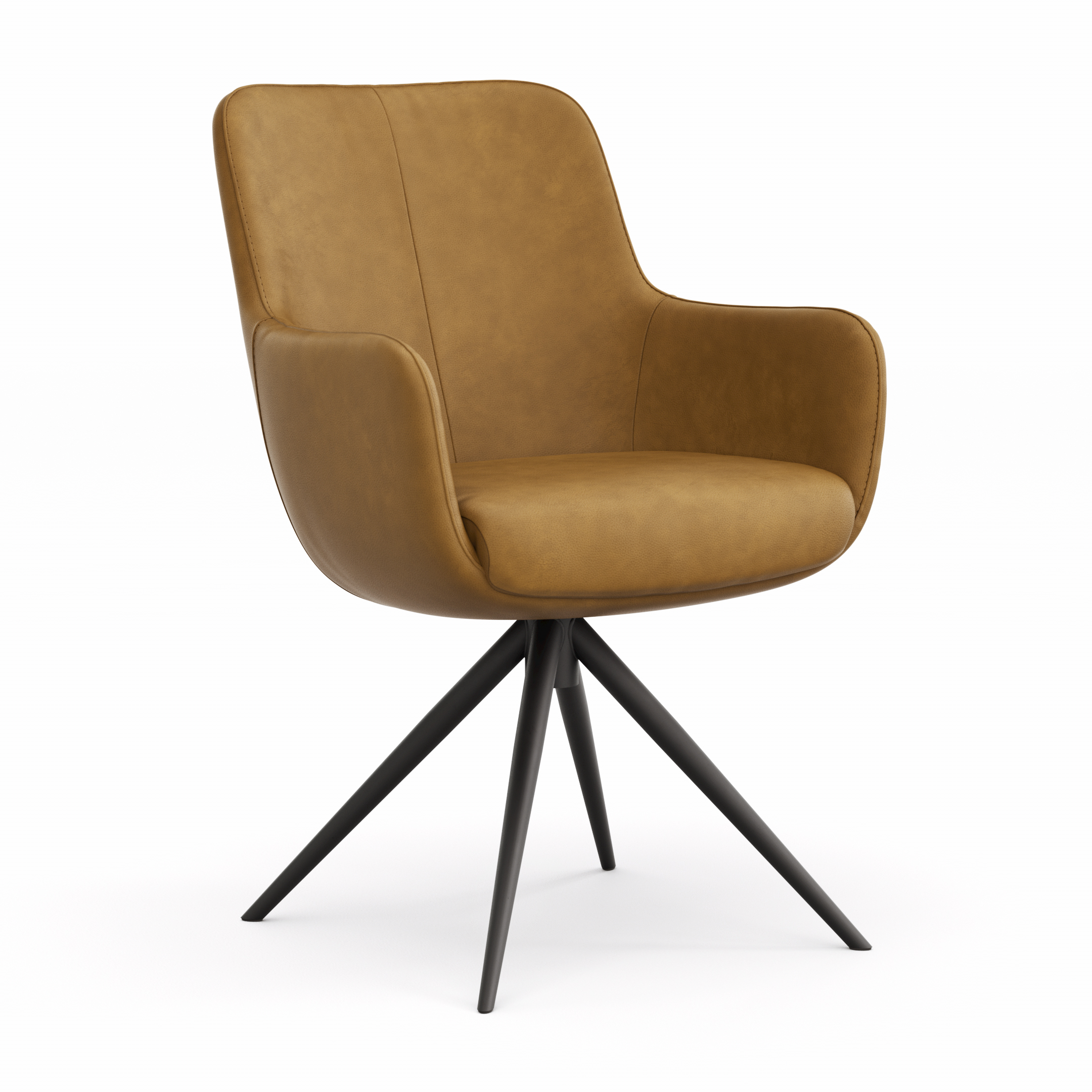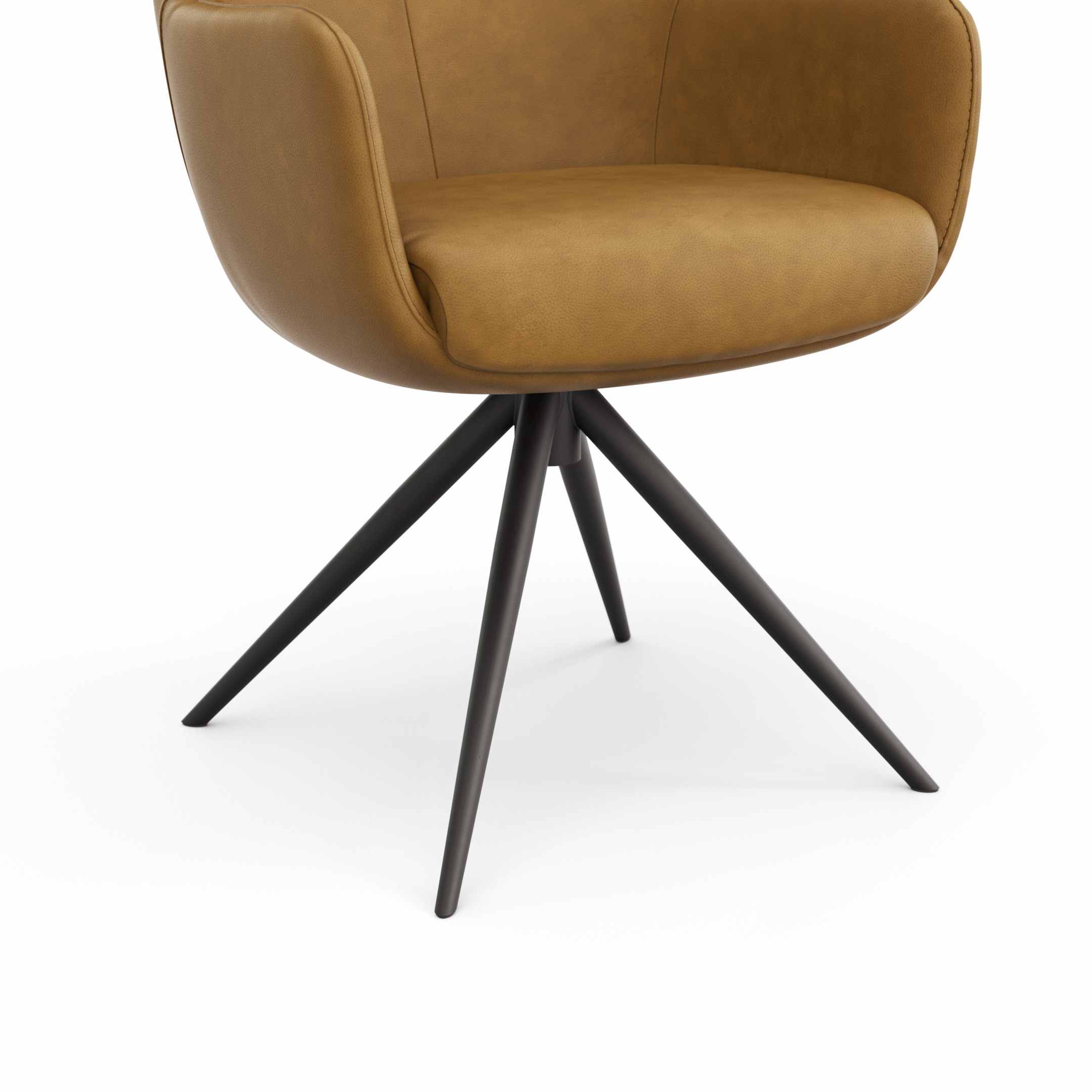 Armlehnstuhl Mis – Leder, Kurkuma, Stativ, Anthrazit