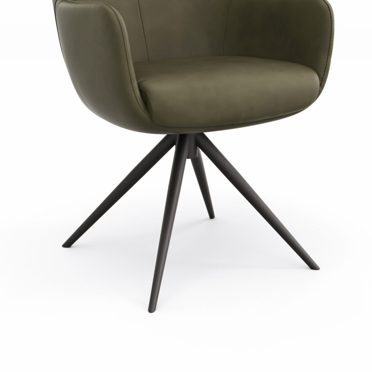 Armlehnstuhl Mis – Leder, Olive, Gestell, Anthrazit