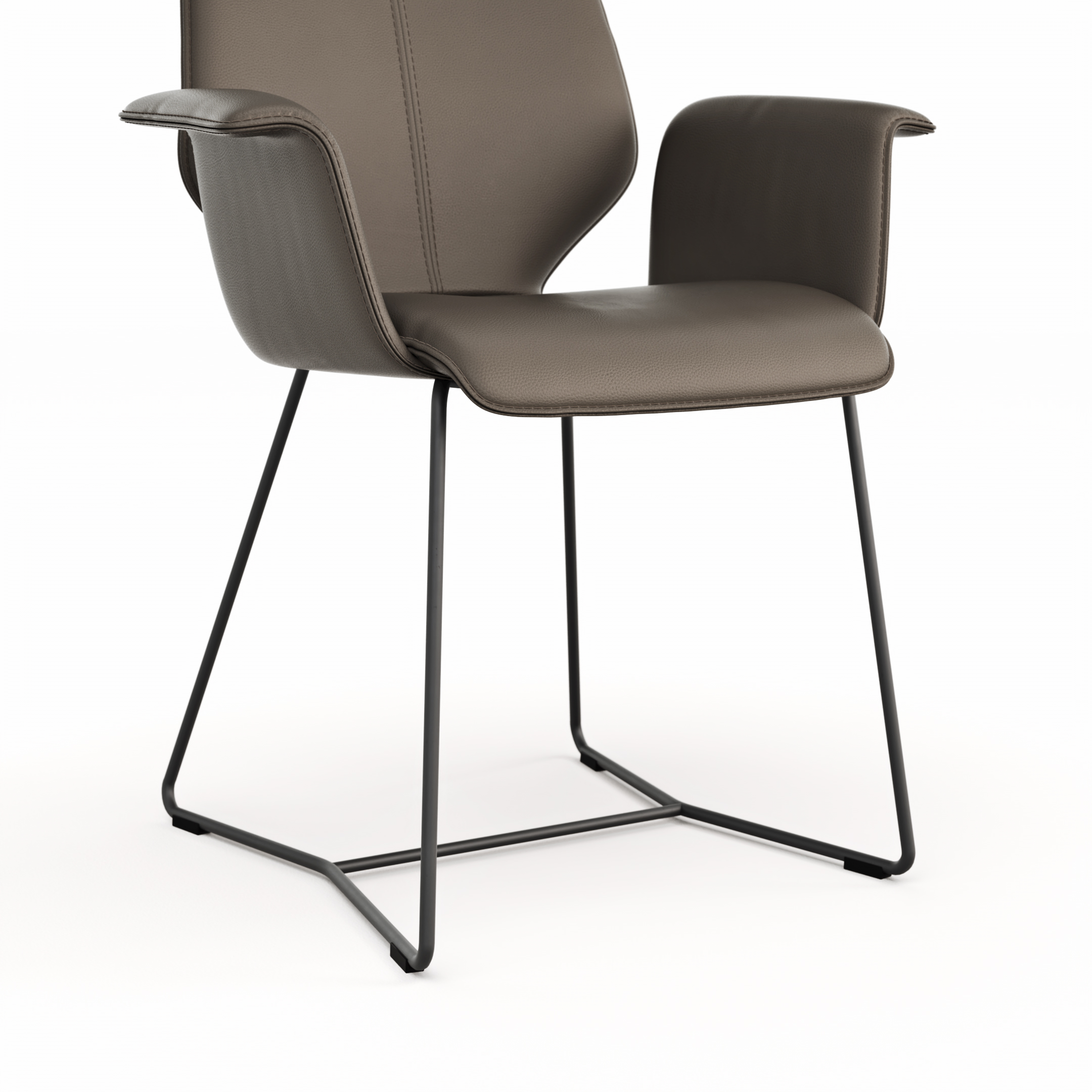 Armlehnstuhl Penthouse – Leder, Dunkelbraun, Kufen, Anthrazit