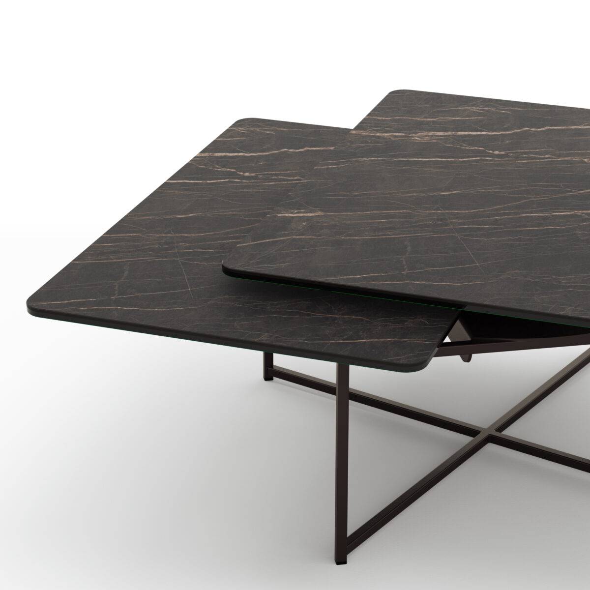 Couchtisch Cena – LB ca. 132×108 cm, Platten drehbar, Keramik, Schwarz