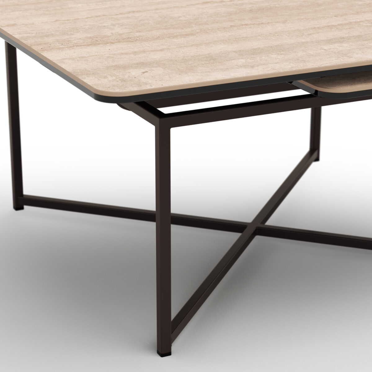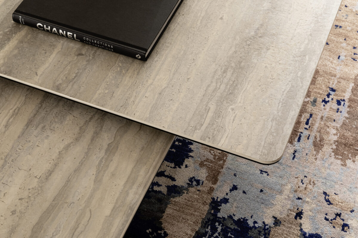 Couchtisch Cena – LB ca. 132×108 cm, Platten drehbar, Keramik, Travertin