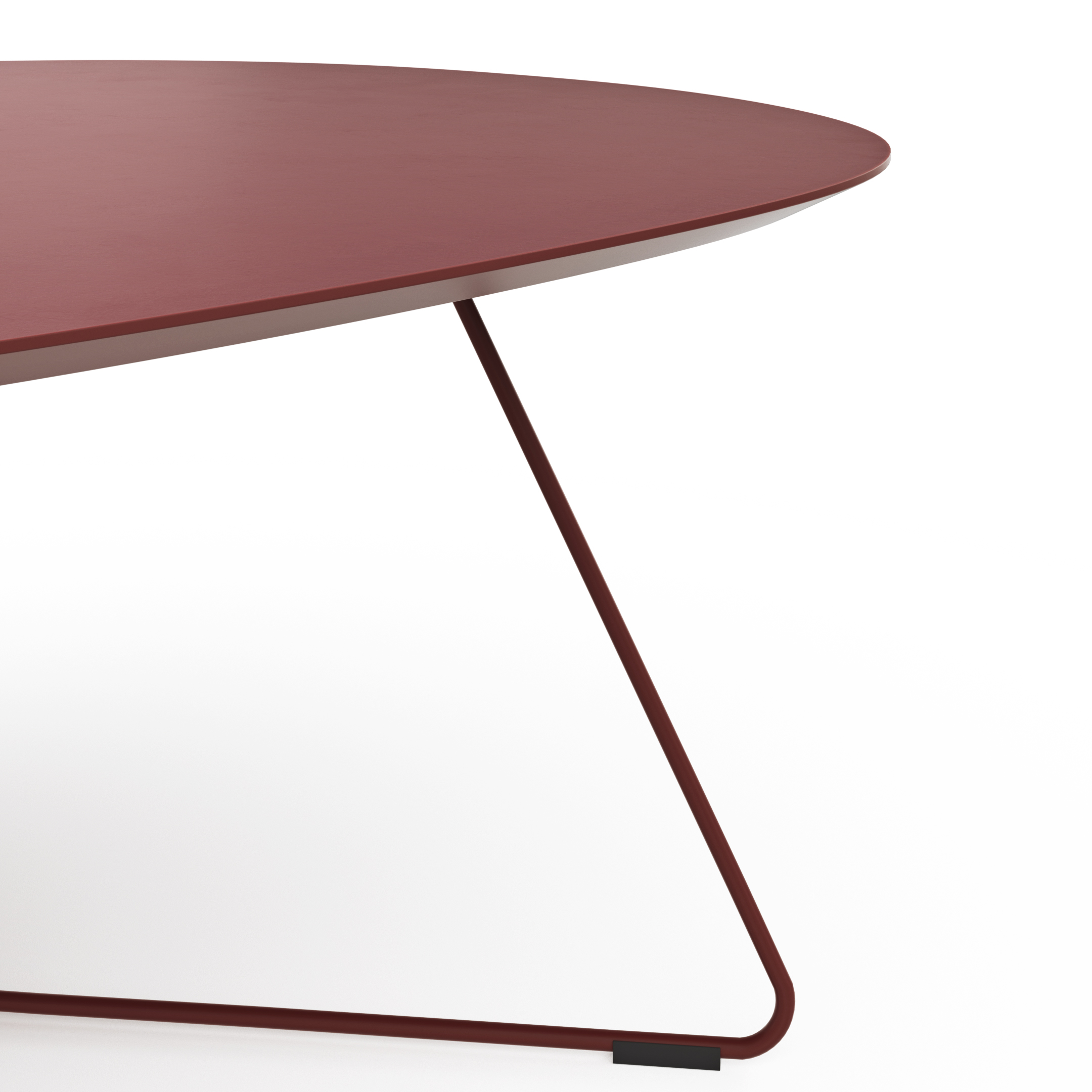 Der Couchtisch Fano von Contur besticht durch sein elegantes Design und die hochwertige Verarbeitung. Mit einer ca. dreieckigen Platte in der Farbe Bordeaux bringt er Stil und Modernität in Dein Wohnzimmer. Die ca. 121×75 cm große Tischplatte bietet ausreichend Platz für Deine Lieblingsdekorationen. Die Metallfüße in Bügelform verleihen dem Tisch Stabilität und einen modernen Touch. Mit einer Höhe von ca. 38 cm passt der Tisch perfekt in jeden Wohnbereich und ergänzt stilvoll Dein Interieur. Ein Must-Have für alle, die Wert auf Design und Qualität legen.