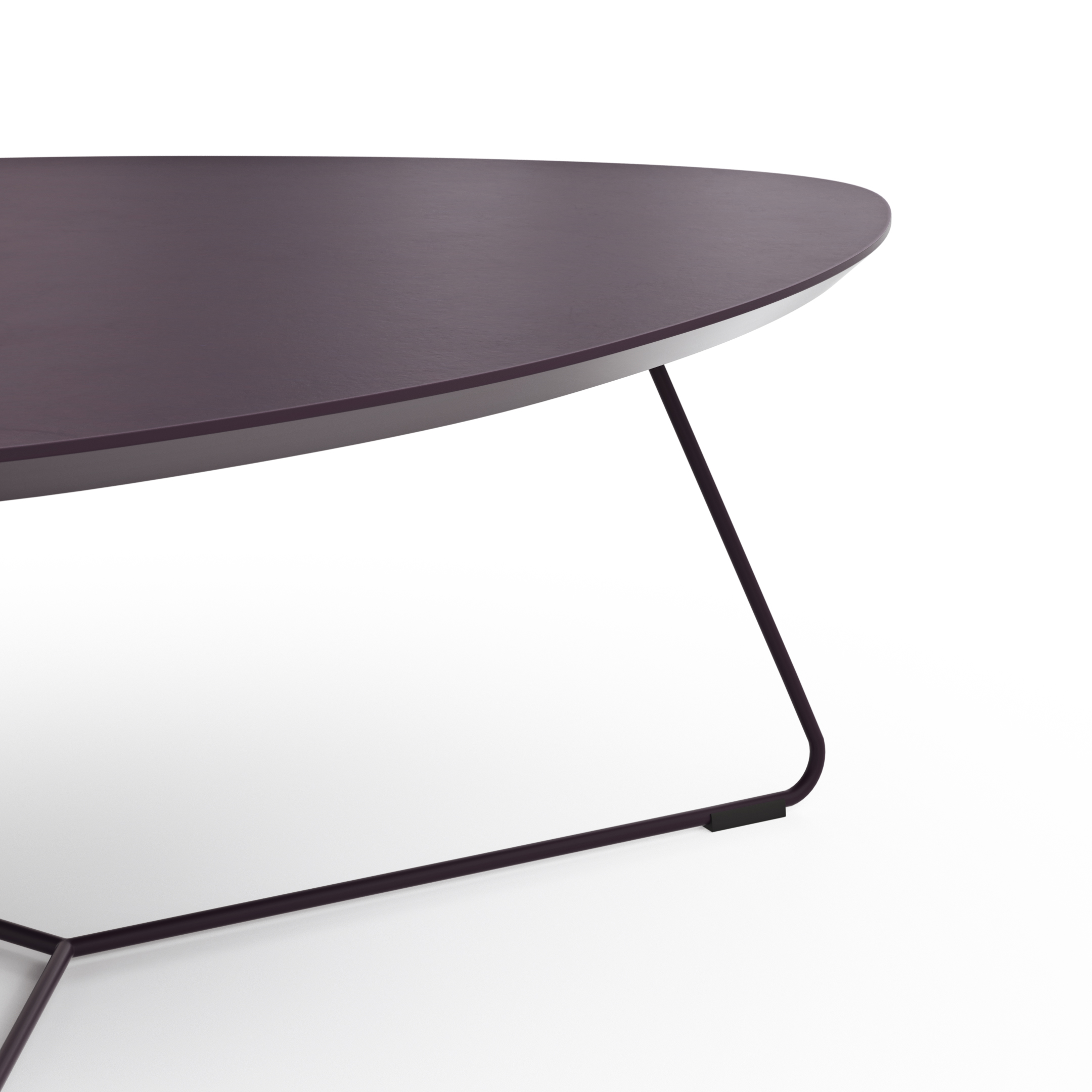 Erlebe den einzigartigen Couchtisch Fano von Contur, der durch seine außergewöhnliche dreieckige Form und das elegante Aubergine-Finish besticht. Mit ca. 33 cm Höhe und ca. 87×78 cm in der Länge und Breite passt dieser Tisch perfekt in jedes moderne Wohnzimmer. Die Bügelform der Füße und das Gestell verleihen dem Tisch eine stilvolle Leichtigkeit. Er ist aus hochwertigem Fenix gefertigt, das für seine robuste und pflegeleichte Oberfläche bekannt ist. Ein wahres Design-Highlight, das deinem Zuhause das gewisse Etwas verleiht.