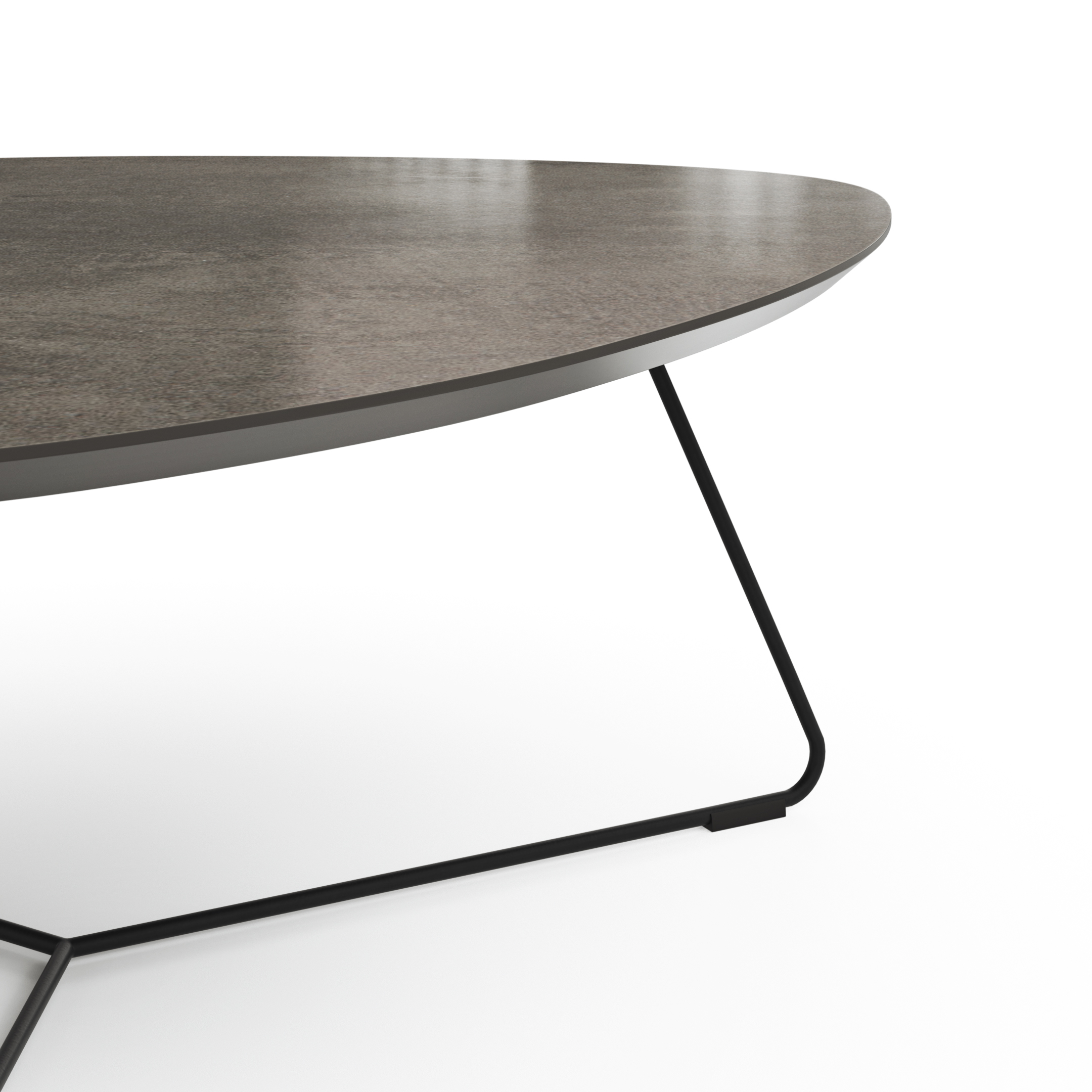 Erlebe den modernen Charme des Couchtischs Fano von Contur. Mit seiner einzigartigen dreieckigen Form und dem ca. 33 cm hohen Bügelgestell fügt er sich nahtlos in jedes Wohnzimmerambiente ein. Die Tischplatte aus hochwertigem HPL-Laminat in stilvollem Graubraun verleiht Ihrem Raum eine elegante Note. Mit den Maßen von ca. 87x78x33 cm bietet dieser Tisch ausreichend Platz für Dekorationen oder alltägliche Gegenstände. Dank der markanten Form und der robusten Bauweise ist der Couchtisch Fano ein echter Blickfang und steht für Qualität und modernes Design.