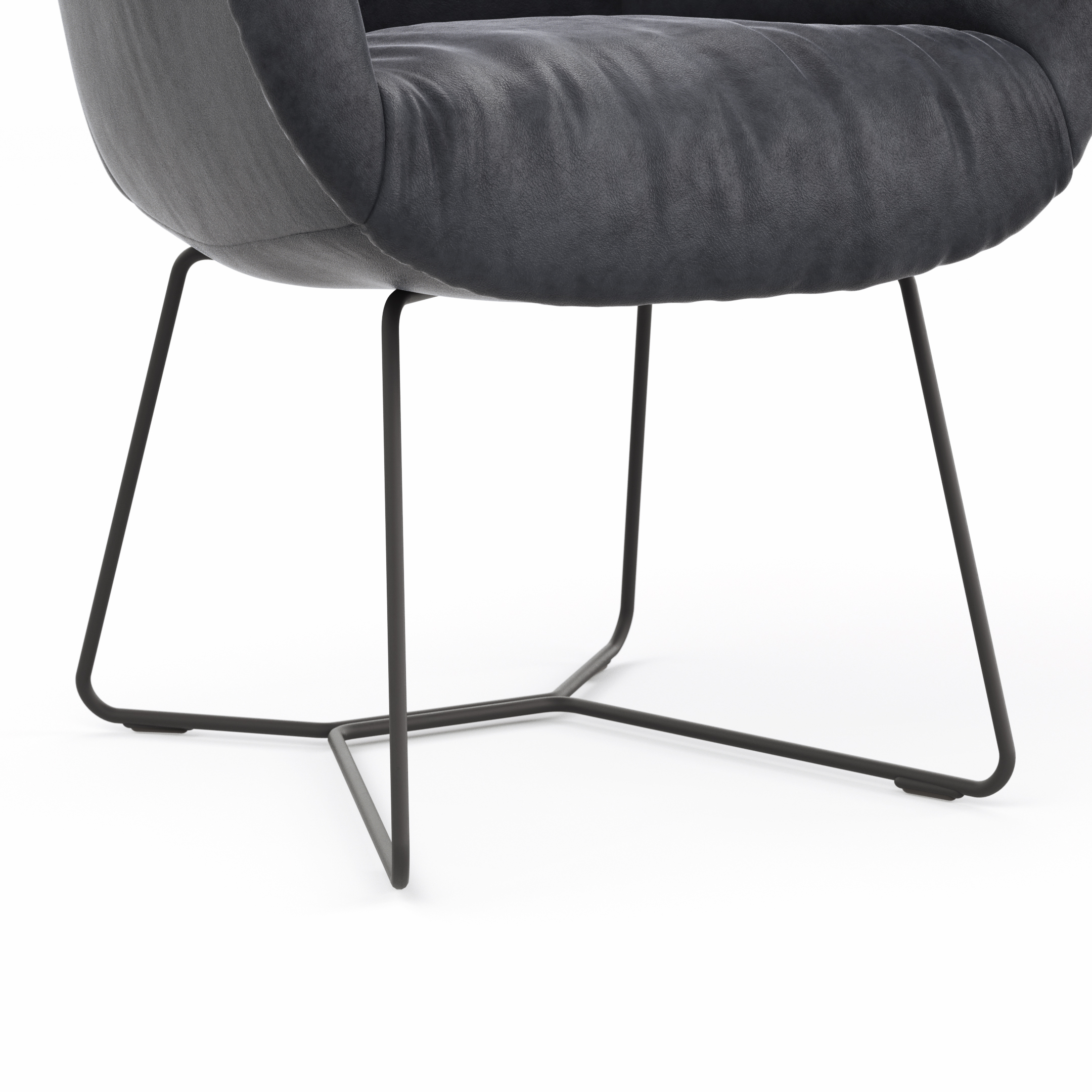 Der „Dinnerchair Sevano – Leder, Anthrazit“ von der Marke „Contur“ ist ein echtes Highlight. Mit einer Sitzhöhe von ca. 50 cm bietet er optimalen Komfort. Die Füße, Beine und das Gestell sind in elegantem Schwarz gehalten und die Form der Kufe verleiht dem Stuhl ein modernes Design. Das Gestell ist aus robustem Metall gefertigt, was für Stabilität und Langlebigkeit sorgt. Der Stuhl ist mit hochwertigem Leder in Anthrazit bezogen, was ihn zu einem stilvollen Hingucker in jedem Raum macht. Die Legere Polsterung ist vom Sitzkomfort kaum zu übertreffen.