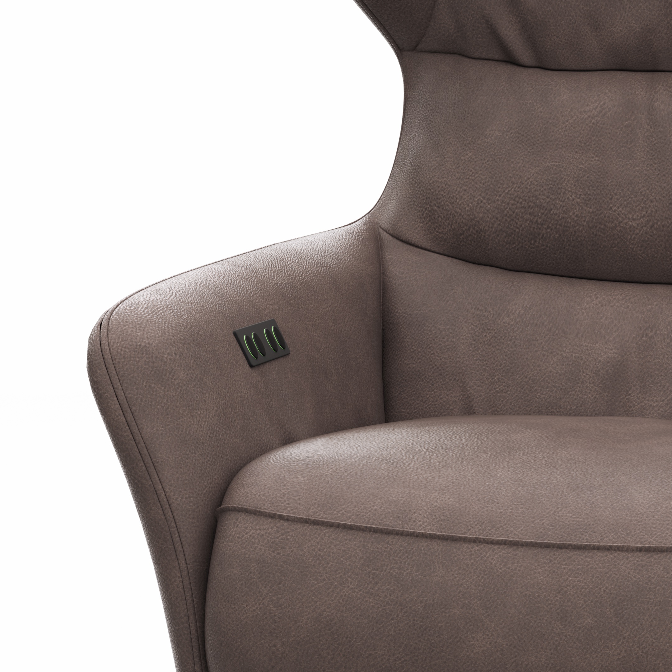 Drehsessel Houston Relax – Größe M, inkl. Relaxfunktion (motorisch), Aufstehhilfe und Kopfstütze, Leder, Dunkelbraun
