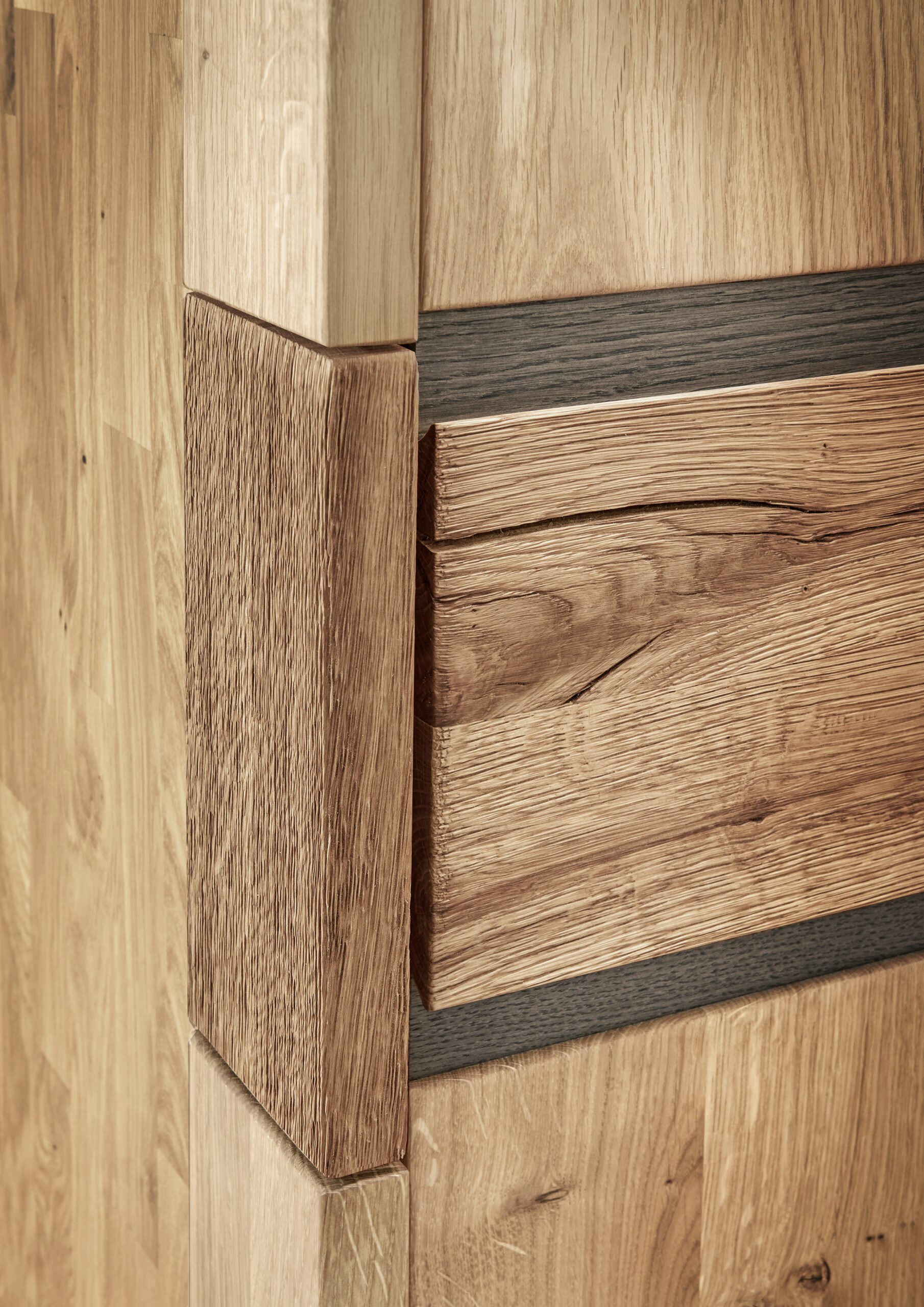 Drehtürenschrank Baltimore – B ca. 292 cm, Wildeiche massiv, natur geölt