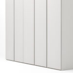 Hochwertige Holzwerkstoffe sind das Grundmaterial für den Schrank Contur Loretto, Das hat den Vorteil von hoher Stabilität bei geringerem Gewicht. Korpus und Fronten in hochwertiger Melaminbeschichtung oder Matt lackiert. Innen in Textiloptik Perlmut. Alle Scharniere sind aus Ganzmetall und mit einem gebremsten Schließmechnismus ausgestattet.