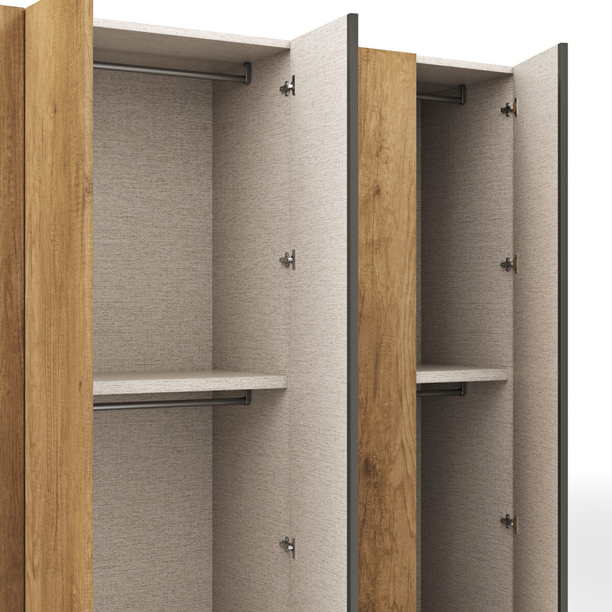 Drehtürenschrank Loretto – B ca. 280 cm, Melamin Astig hell