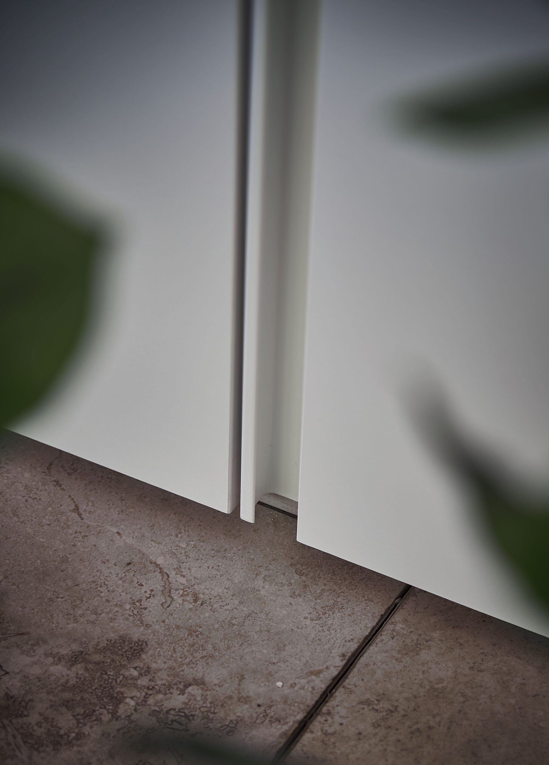 Hochwertige Holzwerkstoffe sind das Grundmaterial für den Schrank Contur Loretto, Das hat den Vorteil von hoher Stabilität bei geringerem Gewicht. Korpus und Fronten in hochwertiger Melaminbeschichtung oder Matt lackiert. Innen in Textiloptik Perlmut. Alle Scharniere sind aus Ganzmetall und mit einem gebremsten Schließmechnismus ausgestattet.