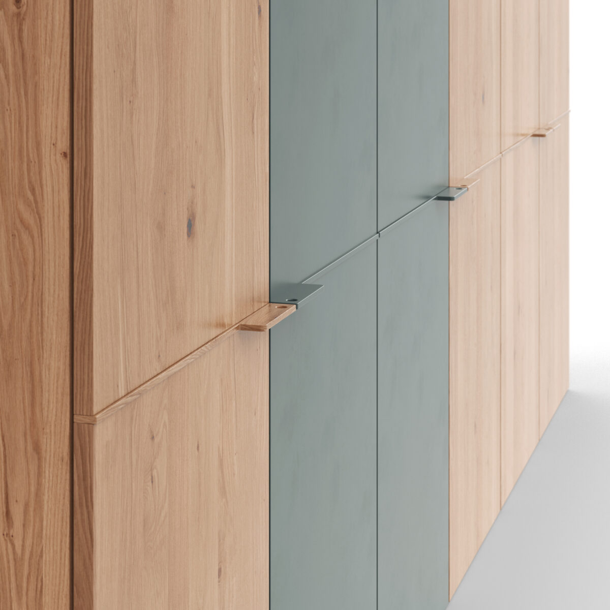 Contur Einrichtung präsentiert den Drehtürenschrank Matera in ca. 302 cm Breite, gefertigt aus Ethno Eiche und blaugrünem Glas. Mit seinen ca. 236 cm Höhe und ca. 60 cm Tiefe bietet er großzügigen Stauraum hinter 6 Türen. Das bodenstehende Design mit Gleitern verleiht Stabilität und Eleganz, während die Kombination aus Eiche und farbigem Glas einen modernen, stilvollen Look schafft. Dieser Schrank ist ideal für diejenigen, die Funktionalität und ansprechendes Design in ihrem Zuhause vereinen möchten.