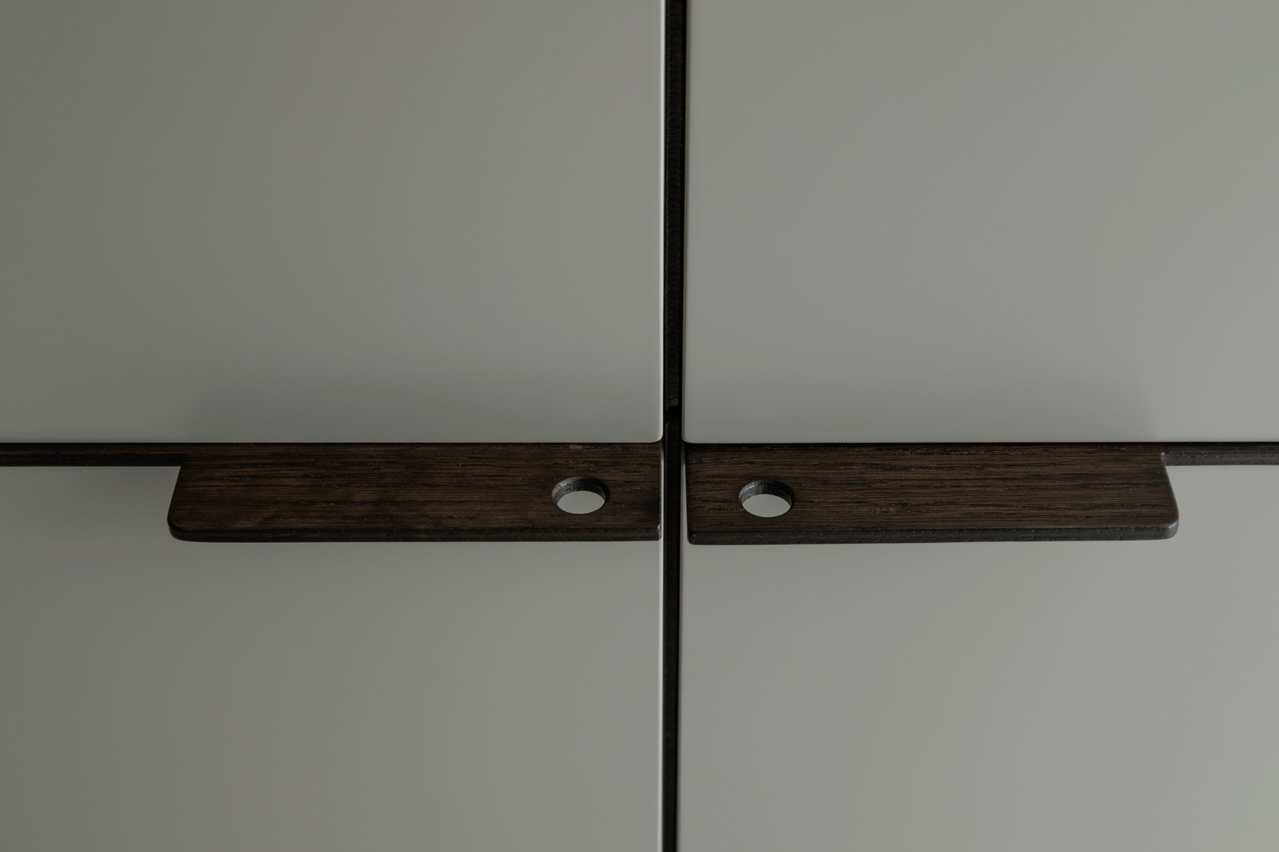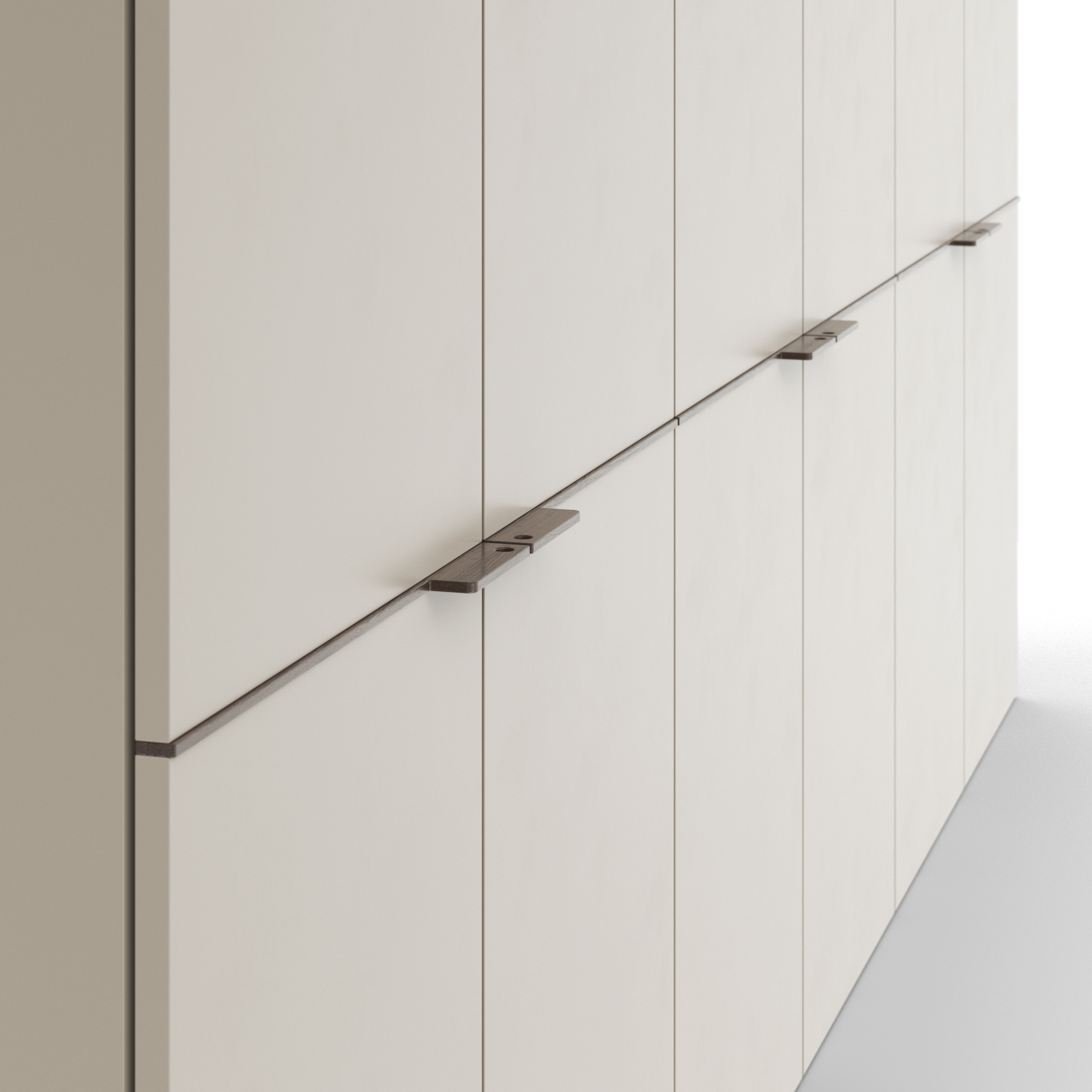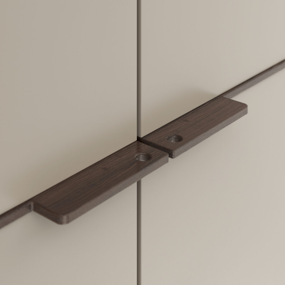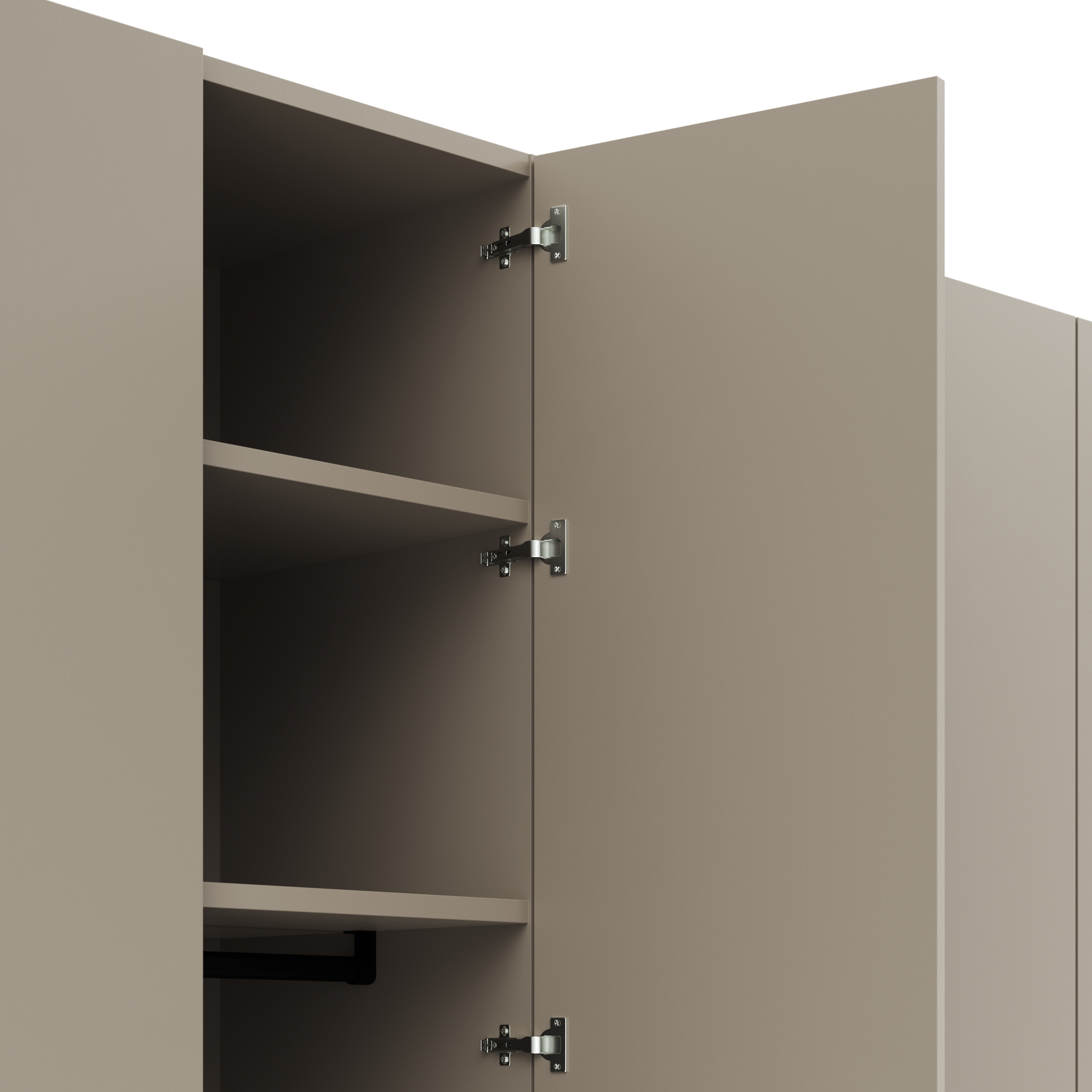 Drehtürenschrank Matera – BHT ca. 301x235x60 cm, Lack Matt, Muschelgrau, Griffe Coffee