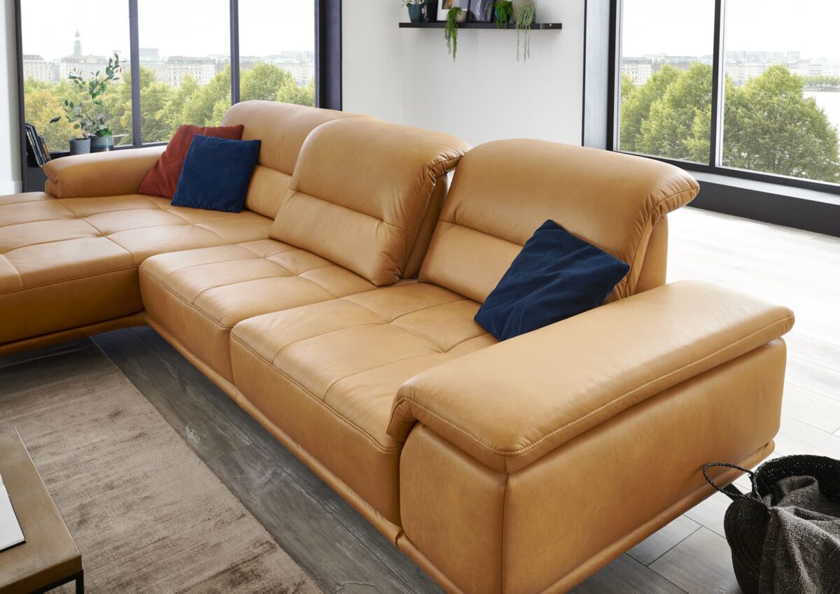 In feinstem Leder, mit eleganter Leichtigkeit und modernem Outfit lädt das Polsterprogramm zur genussvollen Auszeit. Super bequem und zum Verwöhnen bestimmt, garantiert hochwertiger und erstklassig verarbeiteter Kaltschaum genussvolles Sitzen. Verstellbare Kopfpolster, praktisch und kinderleicht in der Handhabung, geben perfekten Halt und verlängern die Rückenhöhe. Longchair´s in X oder XL Format bieten großzügigen Platz. Erweitern Sie Ihren Rückzugsort mit interessanten Zusatzfunktionen. Klappbare Armlehnen, eine Sitztiefenverstellung für individuelle Sitztiefe oder das Longchair mit Motor – vieles ist möglich, um Ihr Sofa zur echten Couchliebe zu machen.
