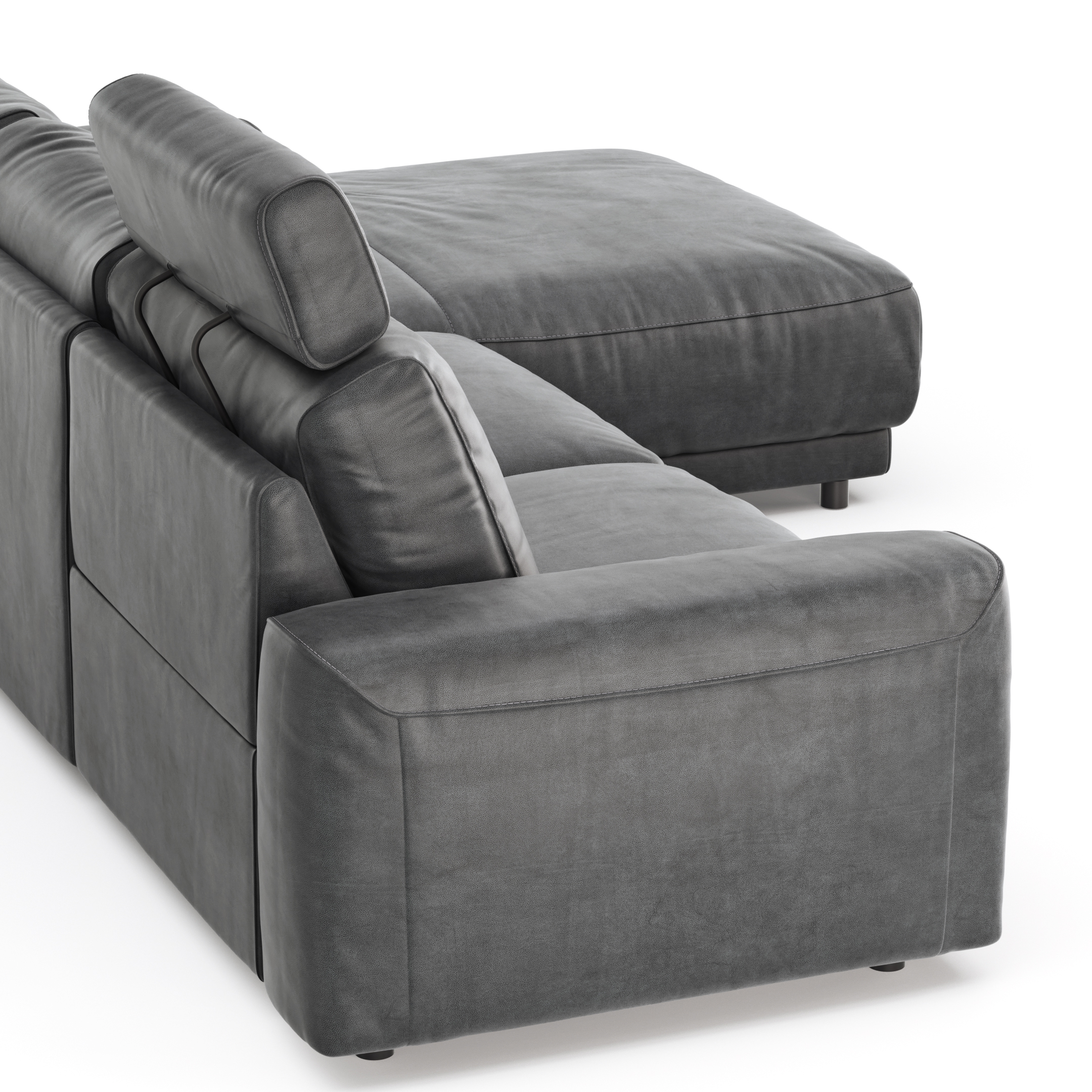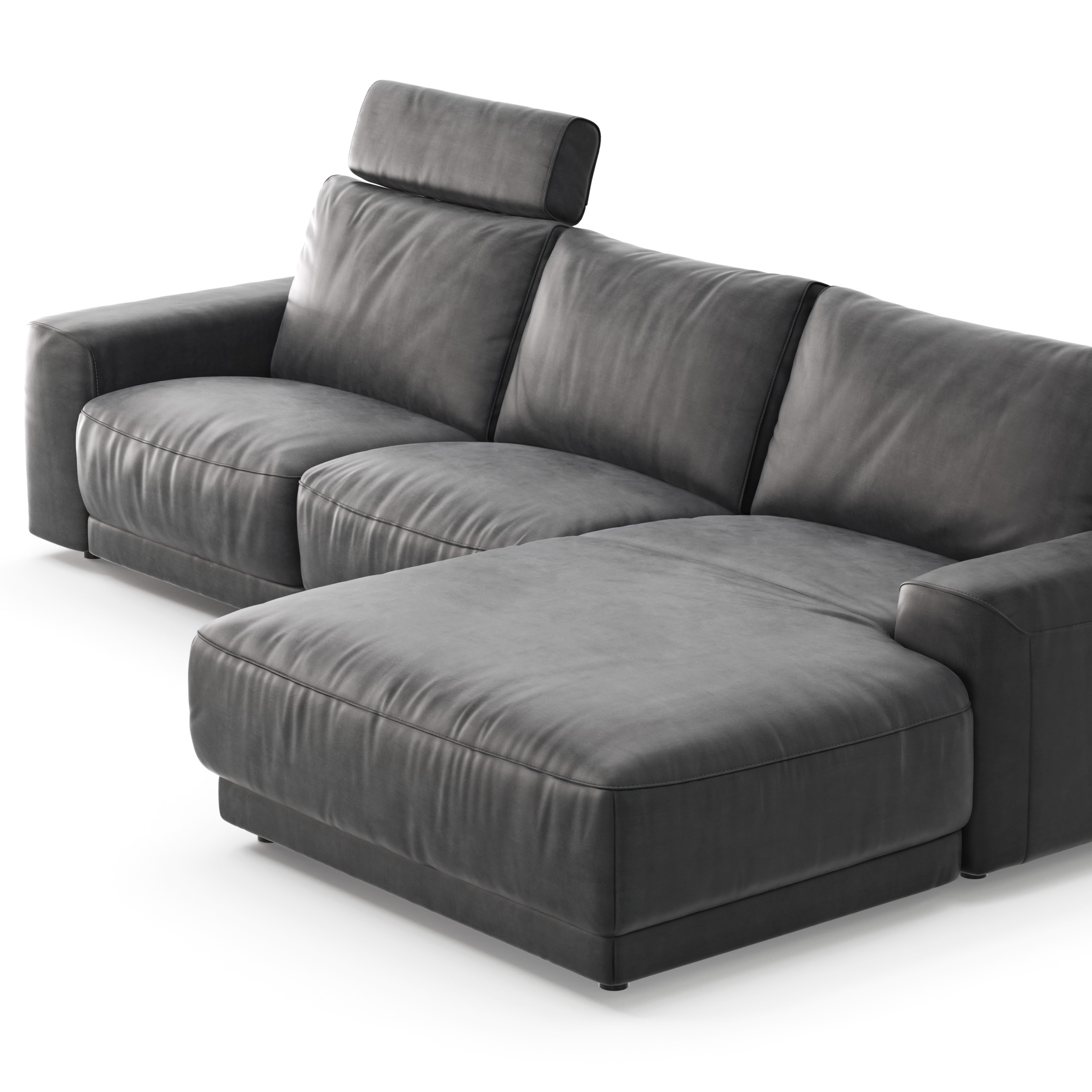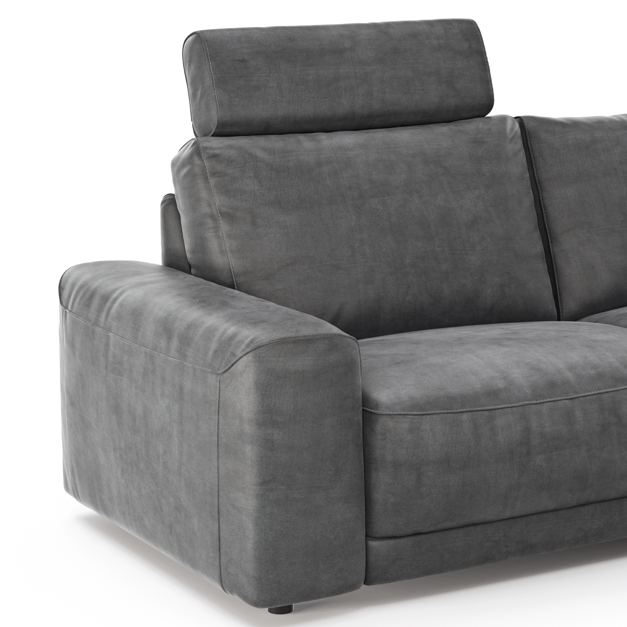 Ecksofa Balok – 2,5-Sitzer mit Longchair groß rechts, inkl. Relaxfunktion (motorisch) und Kopfstütze, Stoff, Anthrazit