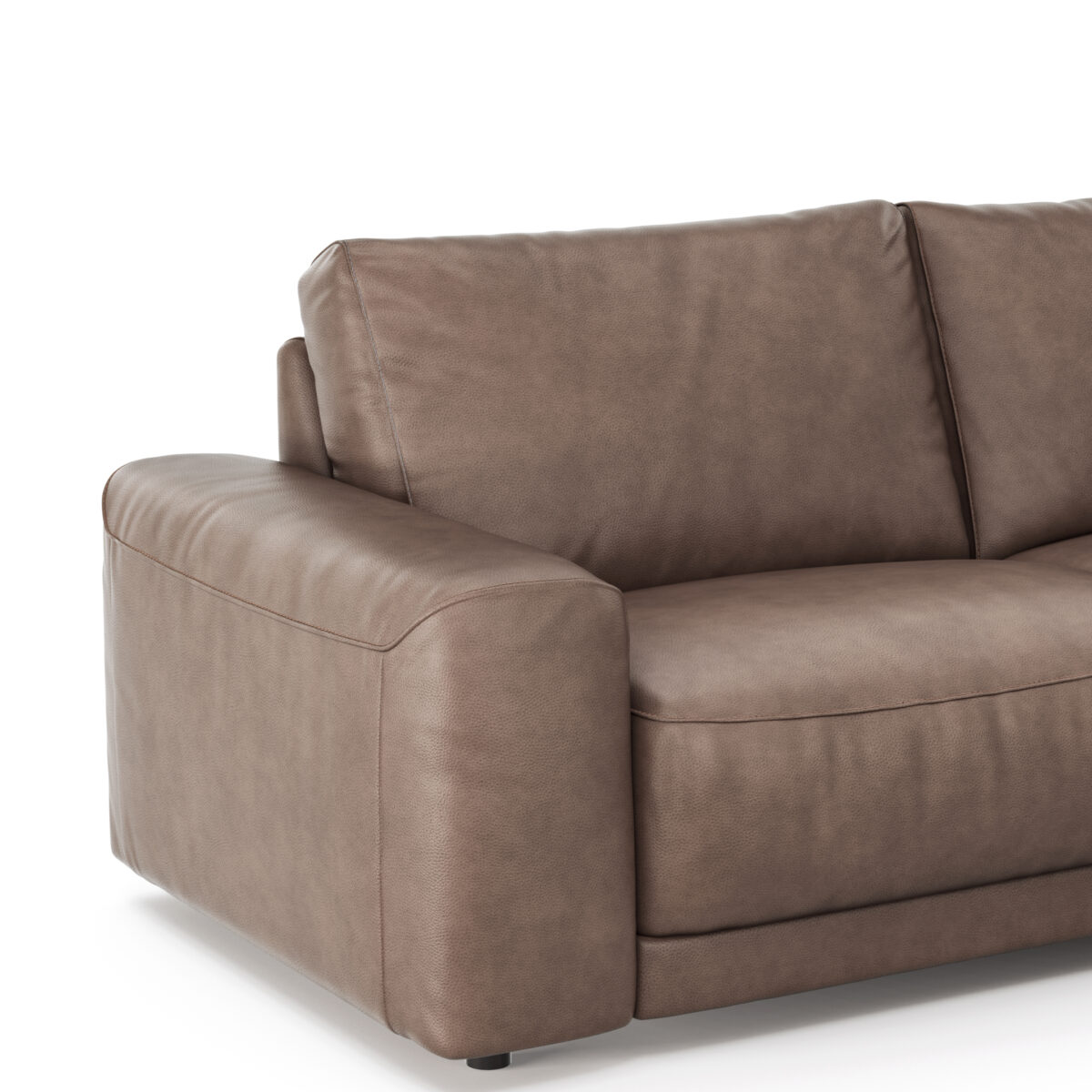 Ecksofa Balok – 2,5-Sitzer mit Longchair groß rechts, Leder, Dunkelbraun