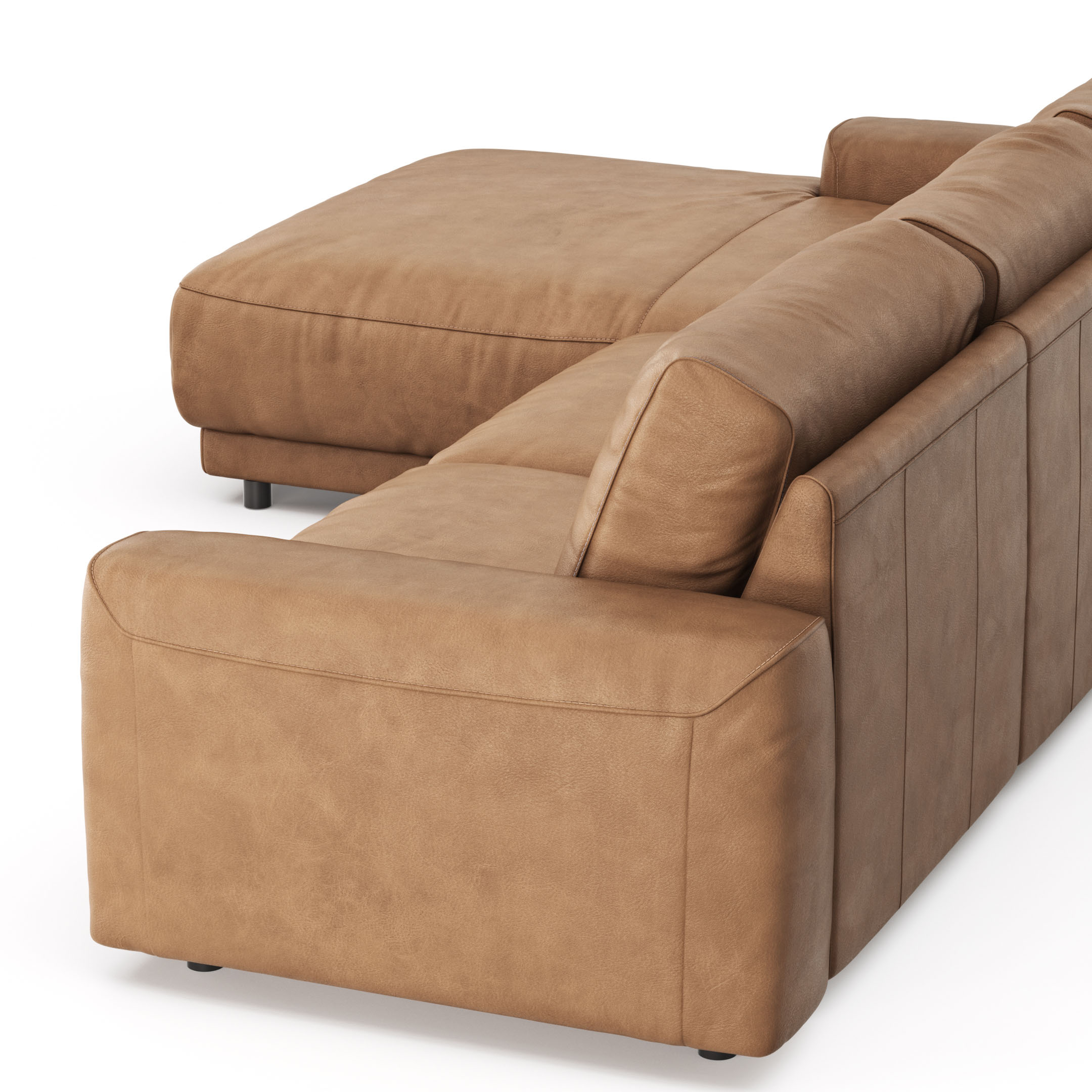 Ecksofa Balok – Longchair groß links mit 2,5-Sitzer, Leder, Cognac