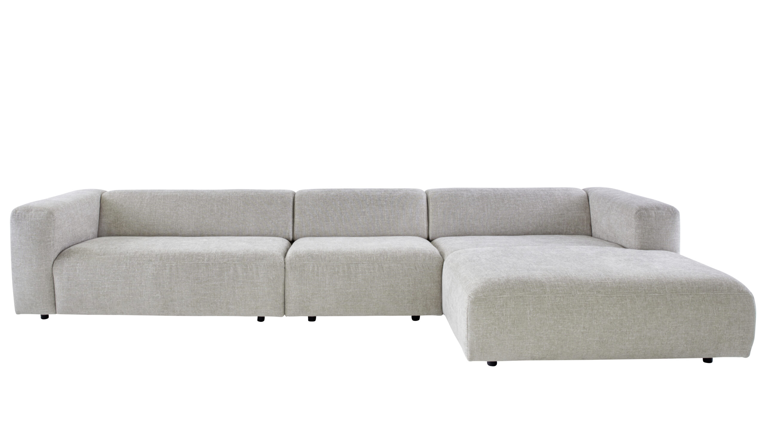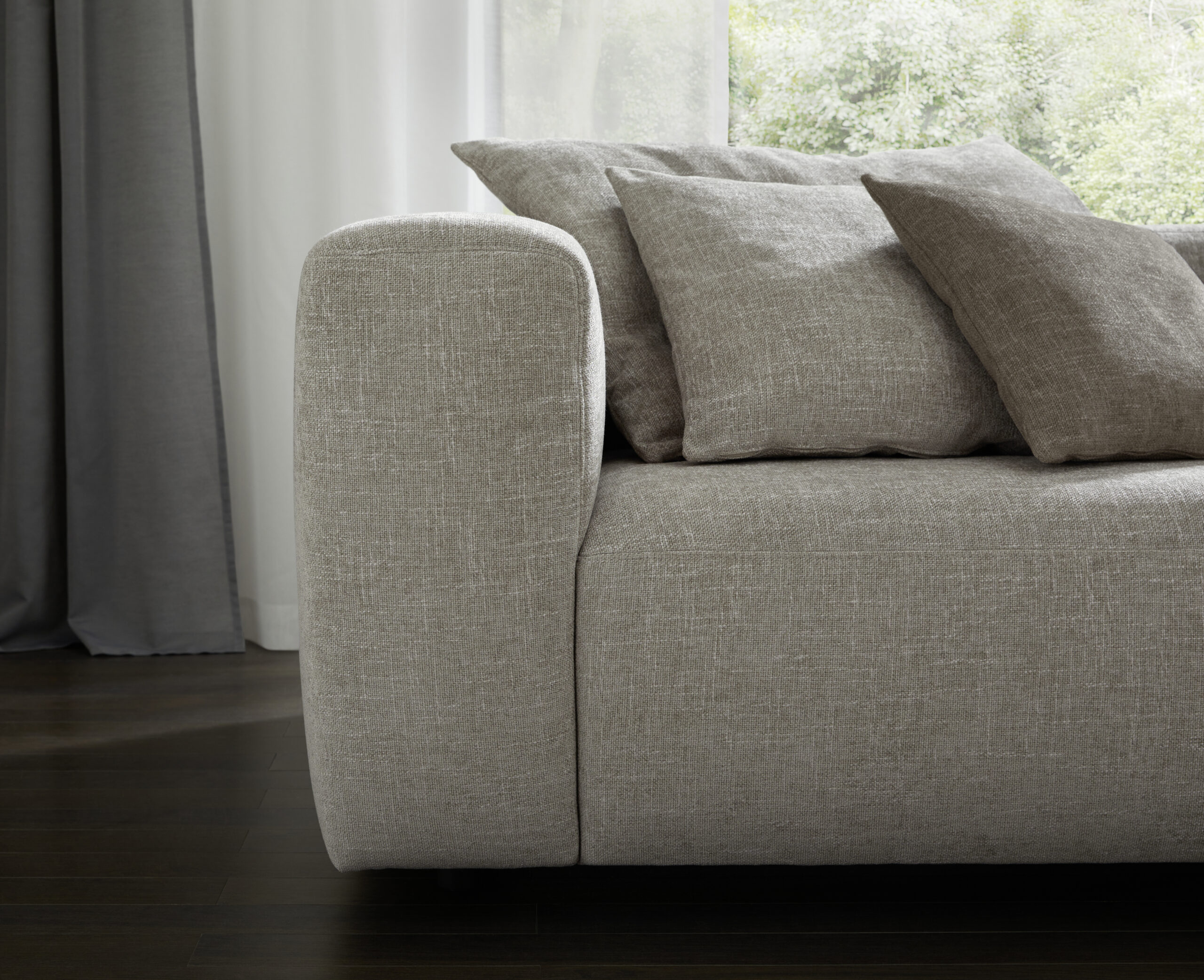 Ecksofa Caruso – 3-Sitzer, Longchair rechts, Stoff, Graubeige