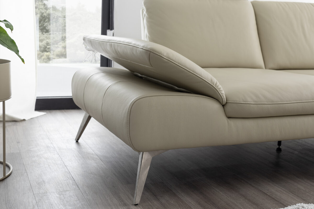 Das Ecksofa Collina von der Marke Contur besteht aus einem 2,5-Sitzer mit einem Longchair rechts. Durch die edlen Ecru-Farbe bekommt es einen luftigen Charakter. Es bietet einen hohen Sitzkomfort durch den Memory Schaum und die integrierten Sitztiefenverstellung. Der Stil des Sofas wird durch die Metallfüße in Edelstahloptik unterstrichen. Absolut ein überzeugender Hingucker für jedes Wohnzimmer!