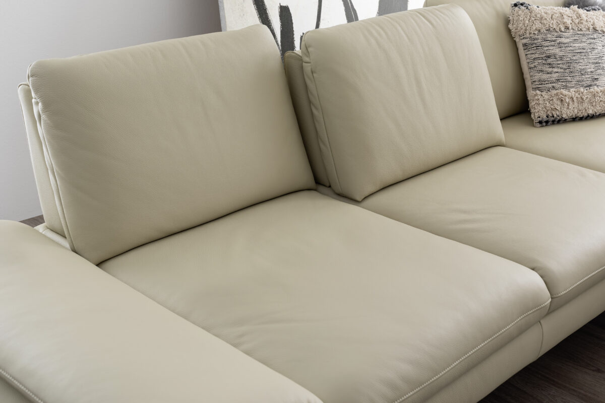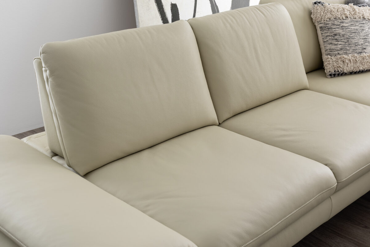 Ecksofa Collina – 2,5-Sitzer, Longchair rechts, inklusive Kopfstütze, Leder, Ecru