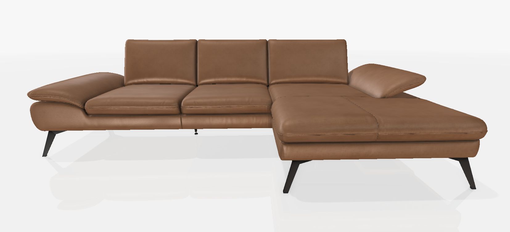 Ecksofa Collina – 2,5-Sitzer, Longchair rechts, Leder, Cognac