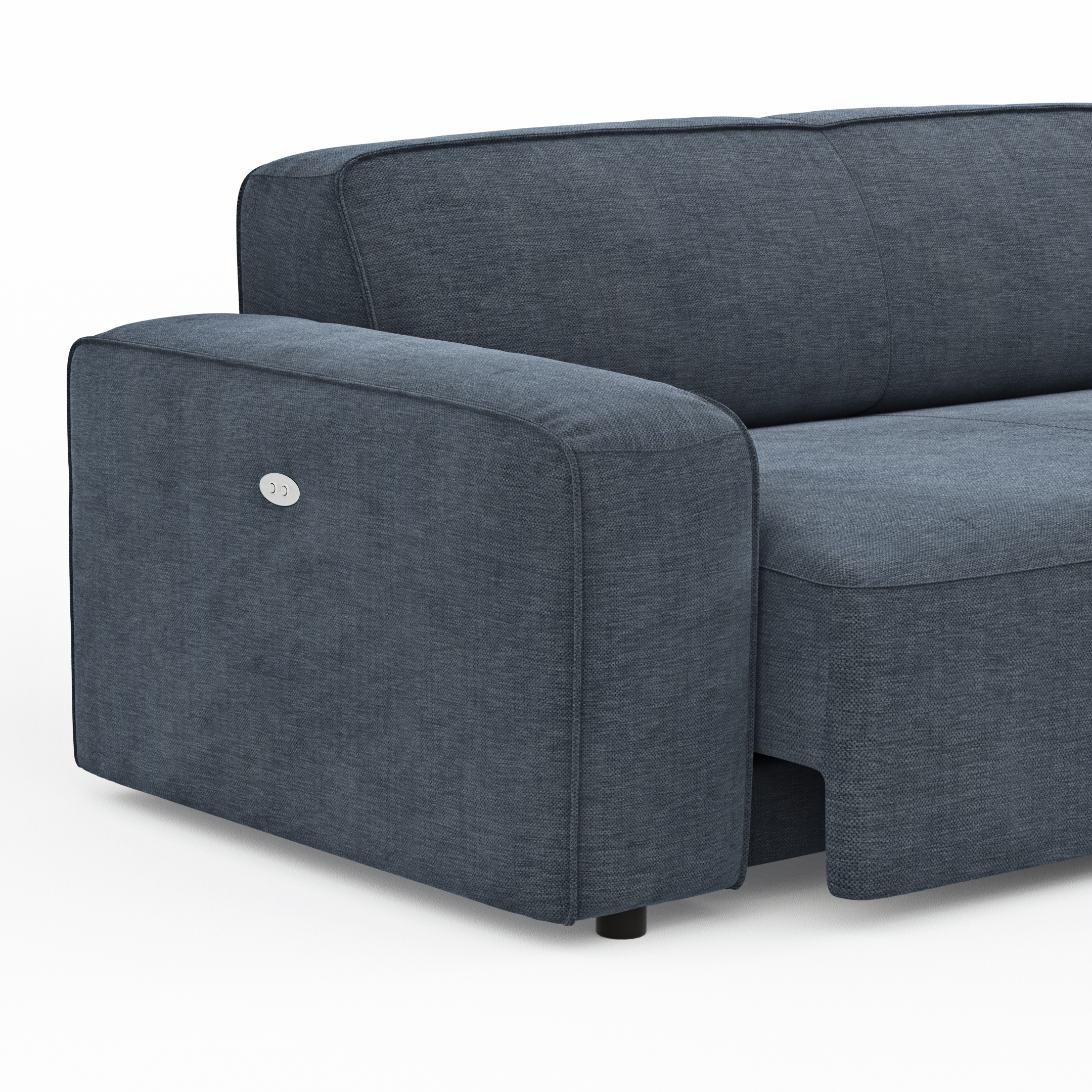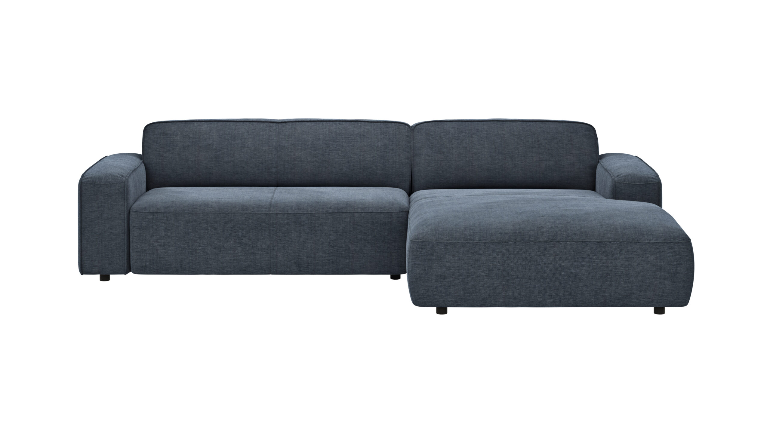 Ecksofa Denver – 2,5-Sitzer mit Longchair rechts, inkl. Sitzvorzug (motorisch), Stoff, Blau