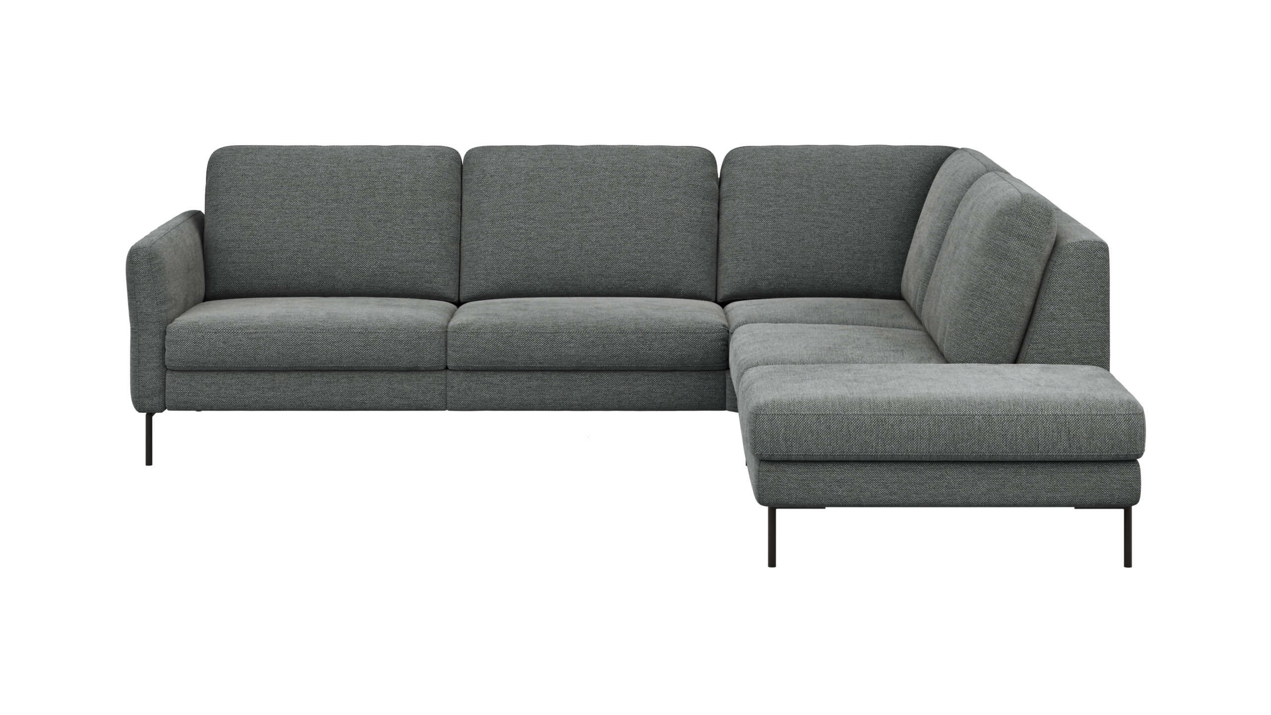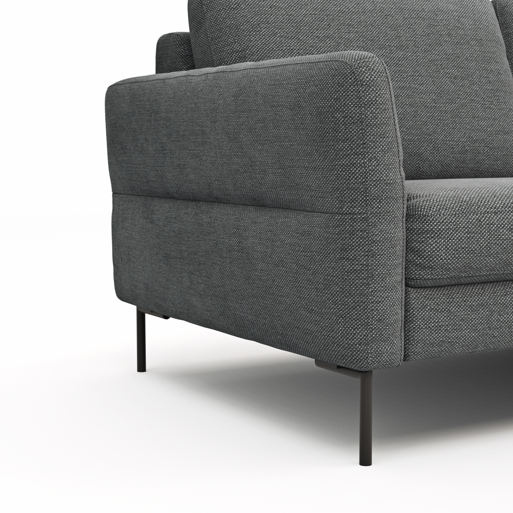 Das Ecksofa Enna von Contur bietet ein stilvolles Design in Anthrazit und überzeugt durch Komfort und Funktionalität. Die ca. 45 cm hohe Sitzfläche besteht aus hochwertigem HR-Schaum mit Nosagfederung, die für optimalen Sitzkomfort sorgt. Die Rückenlehne aus Silikonschaum ergänzt das angenehme Sitzgefühl. Die schwarzen Winkelfüße aus Metall verleihen dem Sofa eine moderne Ästhetik. Mit motorischem Sitzvorzug ist das 3-Sitzer-Sofa mit rechter Ecke perfekt für entspannte Stunden. Ein elegantes Möbelstück, das in jedem Wohnzimmer ein Highlight setzt.