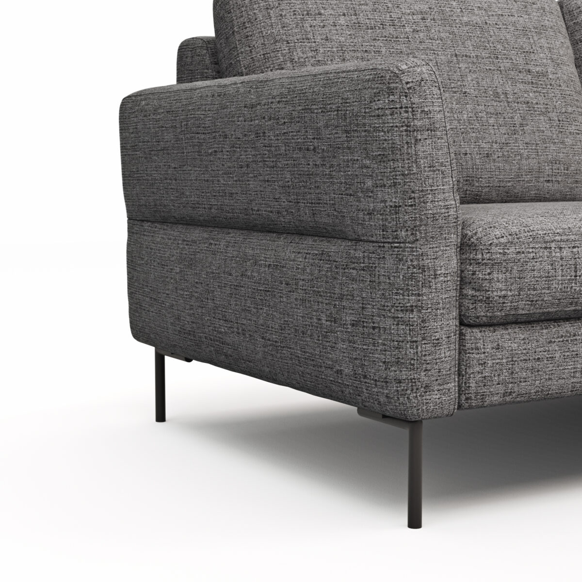 Das Contur Ecksofa Enna ist ein stilvolles 3-Sitzer-Sofa mit rechter Ecke, das durch seine graphitfarbene Stoffoberfläche beeindruckt. Die ca. 45 cm Sitzhöhe sorgt für komfortables Sitzen, während der HR-Schaum und die Nosagfederung optimalen Sitzkomfort bieten. Die Rückenlehne aus Silikonschaum passt sich deinem Körper an und lädt zum Entspannen ein. Das schwarze Metallgestell mit Winkelfüßen verleiht dem Sofa eine moderne Ästhetik und Stabilität. Der motorische Sitzvorzug ermöglicht zusätzliche Flexibilität und individuellen Komfort. Ein Möbelstück, das Eleganz und Funktionalität in deinem Wohnraum vereint.