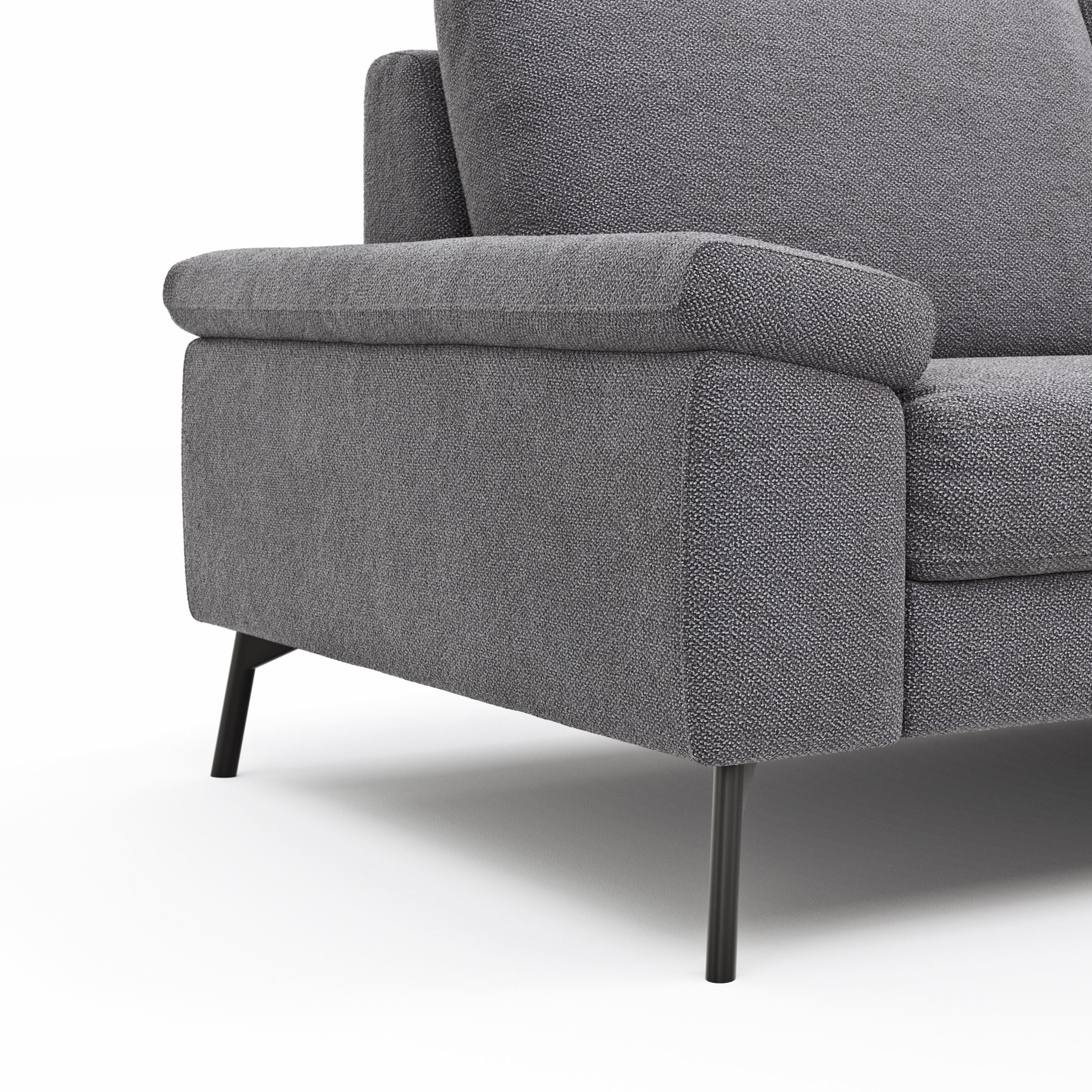 Das Ecksofa Enna von Contur ist der perfekte Begleiter für Dein Wohnzimmer. Mit einem belastbaren Gestell aus schwarzem Metall in Winkelfuß-Design bietet es Stabilität bis ca. 120 kg. Der Sitz aus hochwertigem HR Schaum sorgt für außergewöhnlichen Komfort und eine angenehme Sitzhöhe von ca. 45 cm. Der motorische Sitzvorzug passt sich Deinen Bedürfnissen an und macht das Relaxen noch bequemer. Der Stoff in Kiesel verleiht dem Sofa eine elegante Note, während das durchdachte Design als 3-Sitzer mit rechter Ecke optimal in verschiedenste Wohnräume integriert werden kann.