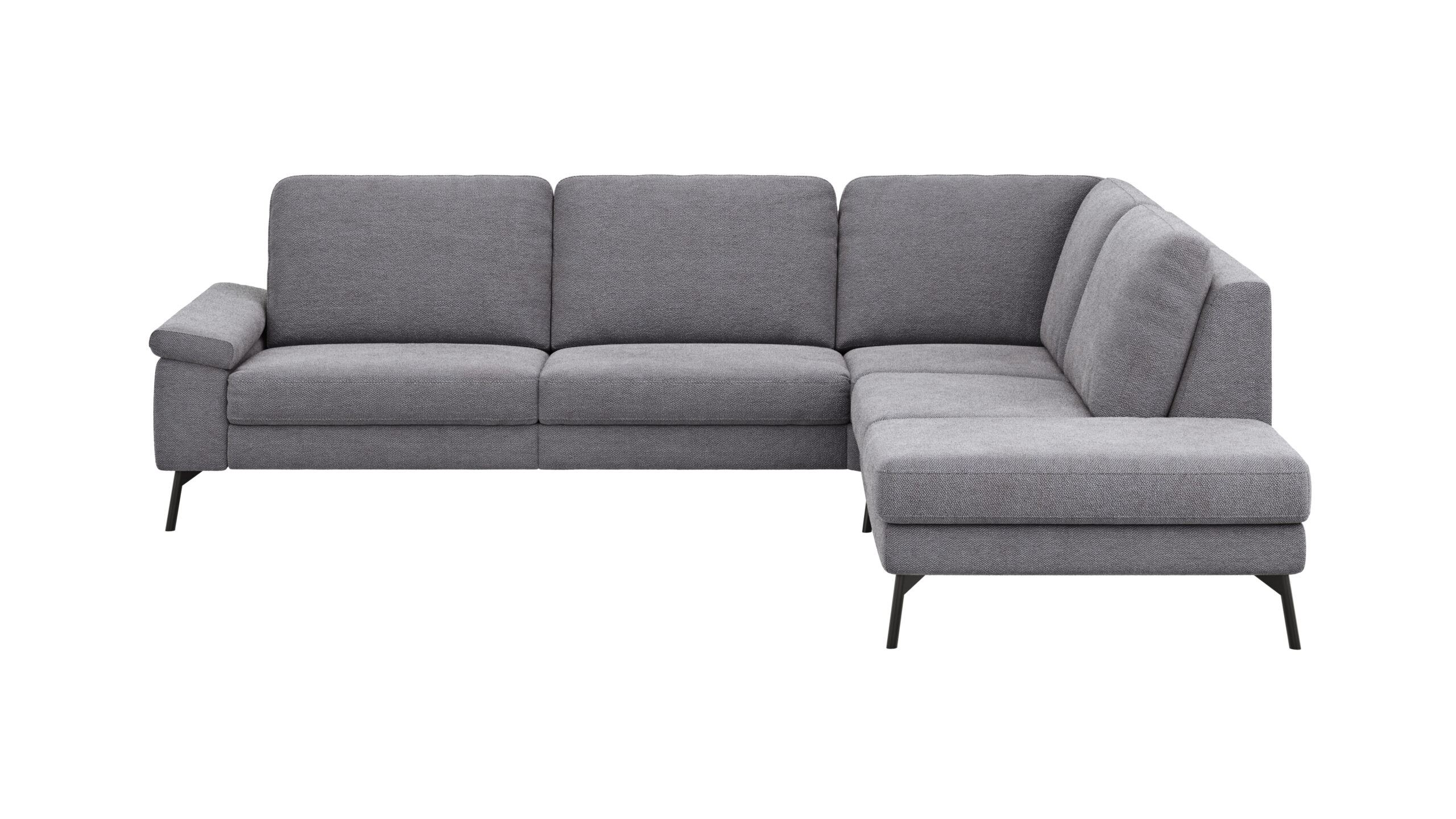 Ecksofa Enna – 3-Sitzer mit Ecke rechts, inkl. Sitzvorzug (motorisch), Stoff, Kiesel
