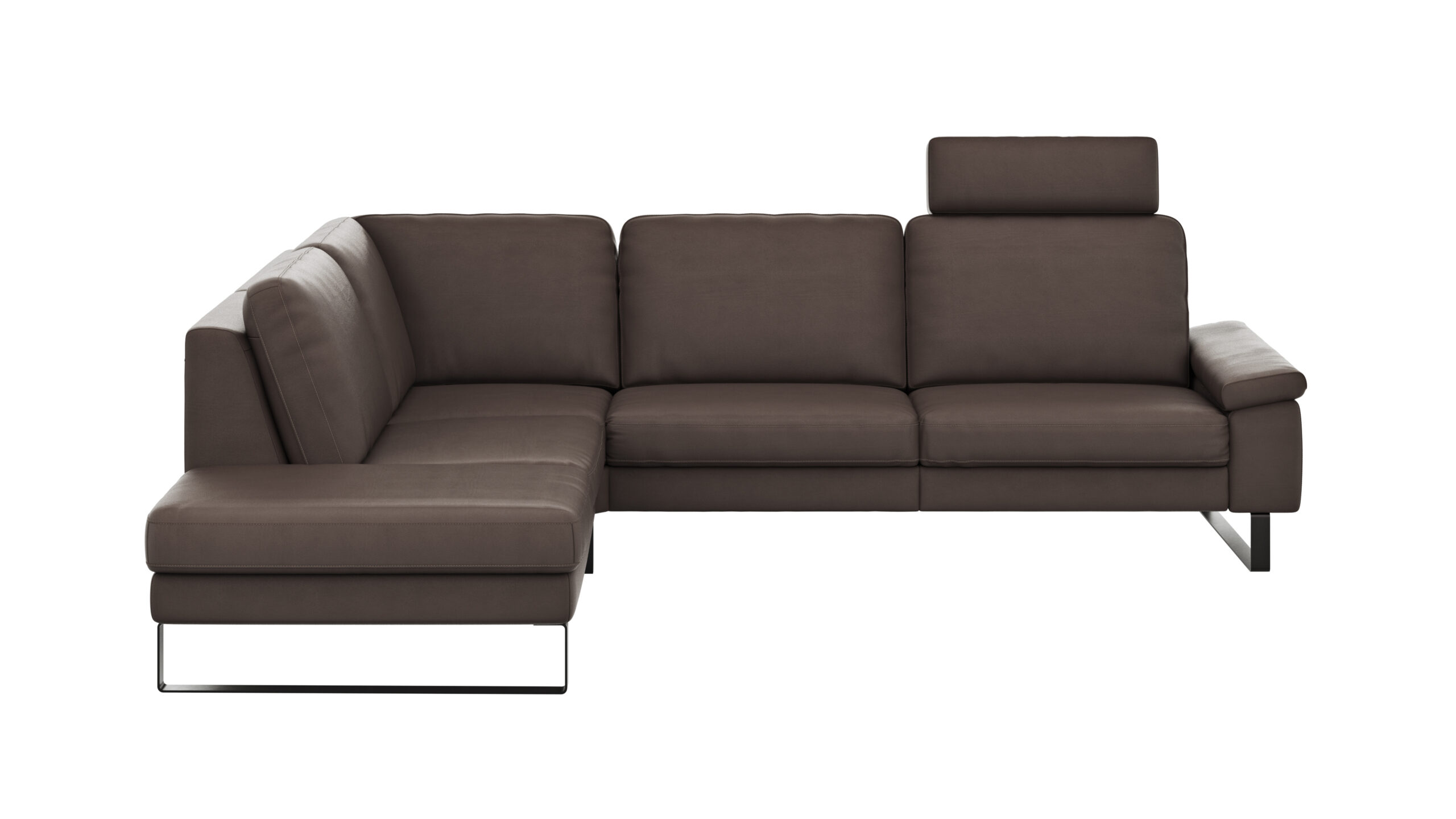 Ecksofa Enna – Ecke links mit 3-Sitzer, Leder, Mocca