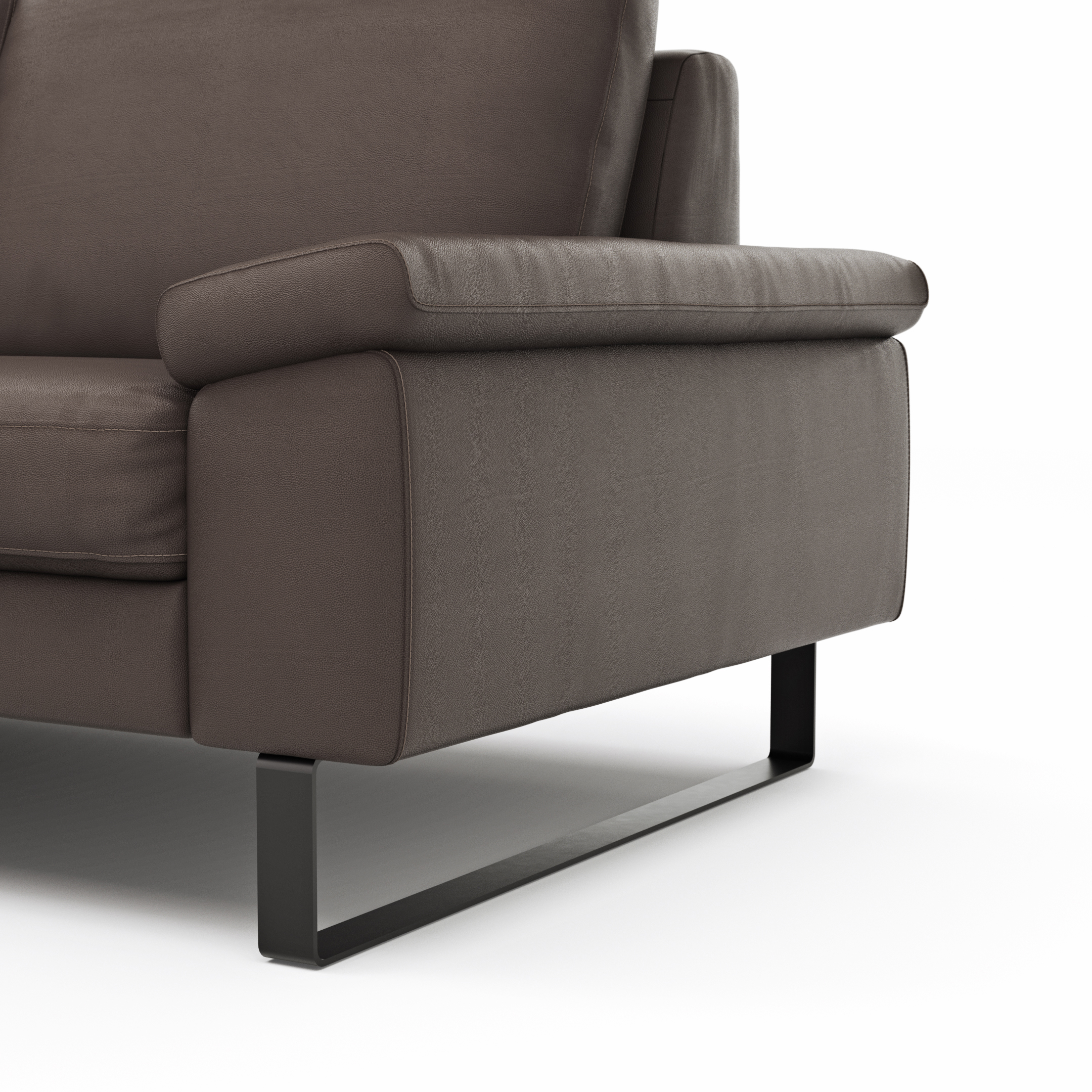 Das Ecksofa Enna von Contur in edlem Mocca-Leder vereint elegantes Design mit höchstem Komfort. Die Kombination aus Stahlwellenfedern, Taschenfederkern und Kaltschaum im Sitz sorgt für ein unvergleichliches Sitzerlebnis. Die Rückenlehne aus Silikonschaum unterstützt optimal und lädt zum Entspannen ein. Mit einer Sitzhöhe von ca. 45 cm bietet das Sofa ein angenehmes Sitzgefühl. Die schwarzen Metallkufen verleihen dem Möbelstück eine moderne Note und garantieren Stabilität mit einer Belastbarkeit von bis zu 120 kg. Ein stilvolles Highlight für jedes Wohnzimmer.