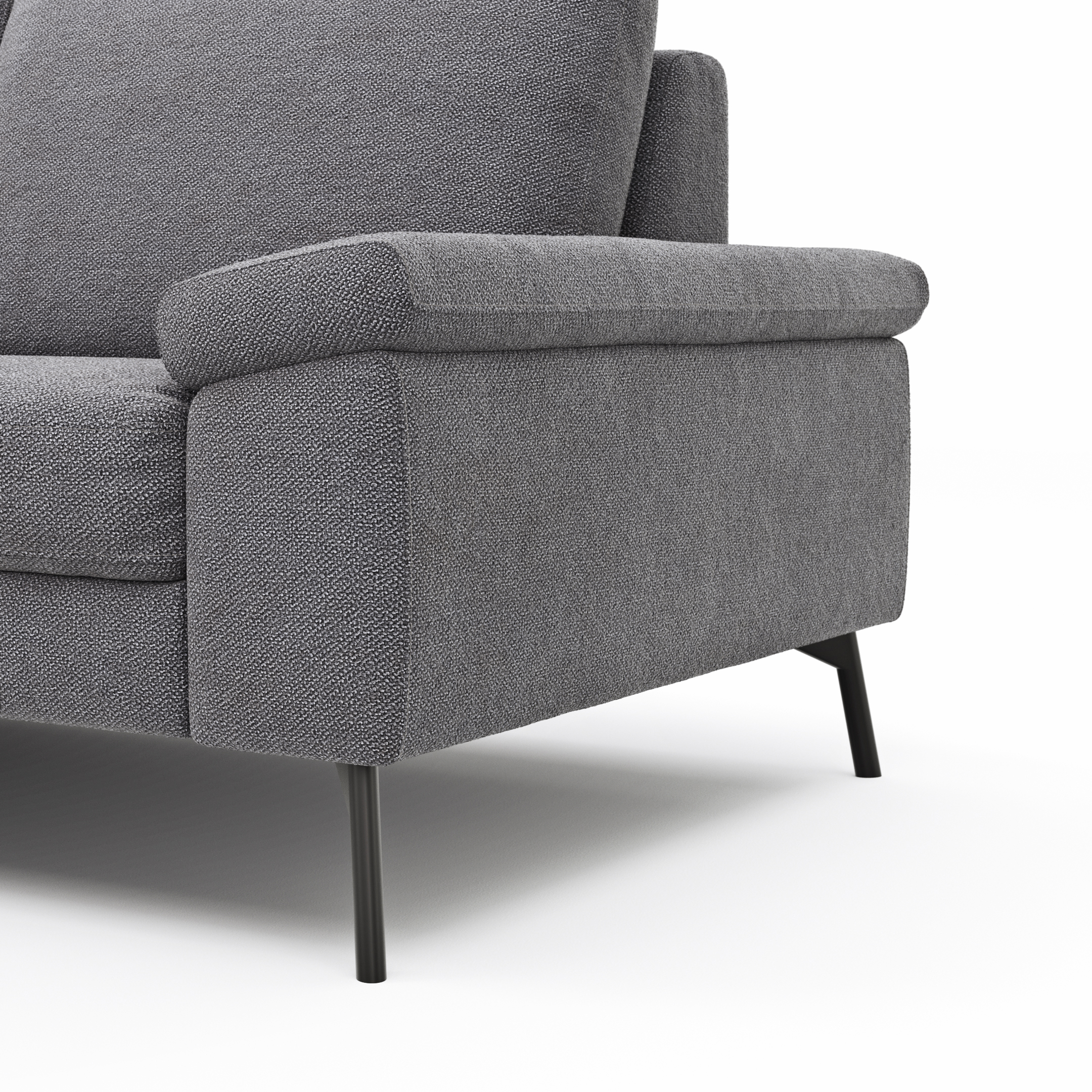 Entdecke das elegante Ecksofa Enna von Contur, ein 3-Sitzer mit rechter Recamiere, der mit seinem motorischen Sitzvorzug beeindruckt. Der hochwertige HR-Schaum sorgt für erstklassigen Sitzkomfort, während das stilvolle Kieselstoff-Design deinem Raum eine zeitlose Eleganz verleiht. Mit einer Belastbarkeit von ca. 120 kg bietet es Stabilität und Langlebigkeit. Die schwarzen Winkelfüße aus Metall verleihen dem Sofa einen modernen Touch und sorgen für einen sicheren Stand. Mit einer Sitzhöhe von ca. 45 cm lädt es zum entspannten Verweilen ein und passt sich hervorragend in verschiedene Wohnstile ein.