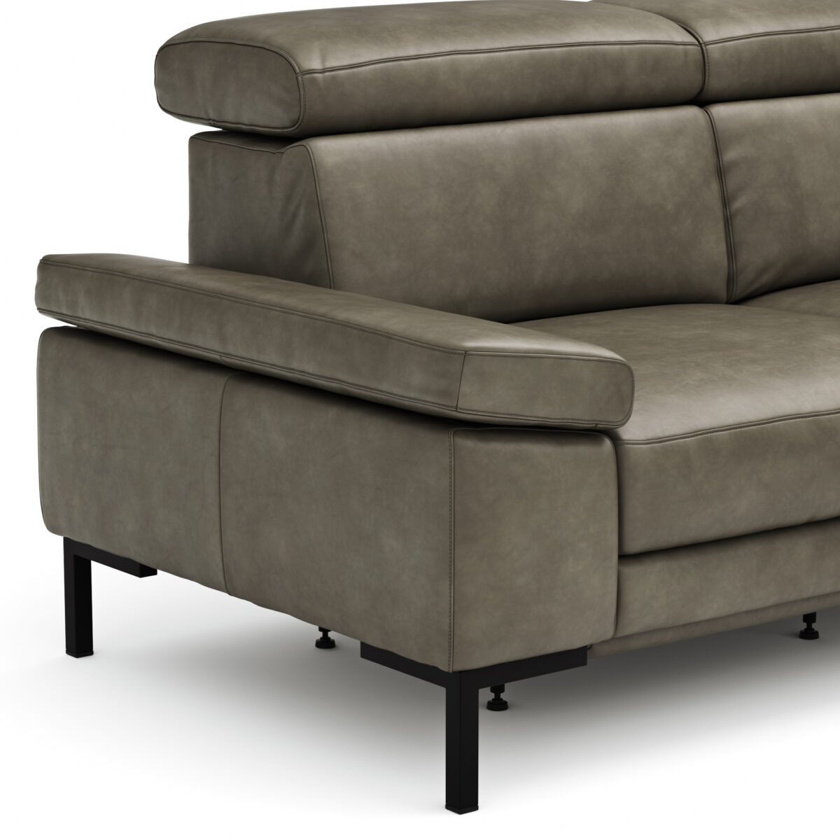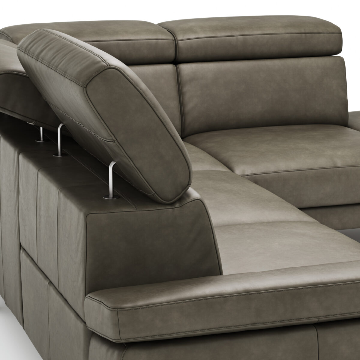 Ecksofa Hudson – 2,5-Sitzer mit Ecke rechts, inkl. Kopfteil/Armlehne verstellbar und Sitzvorzug/Relaxfunktion (motorisch), Leder, Braungrün