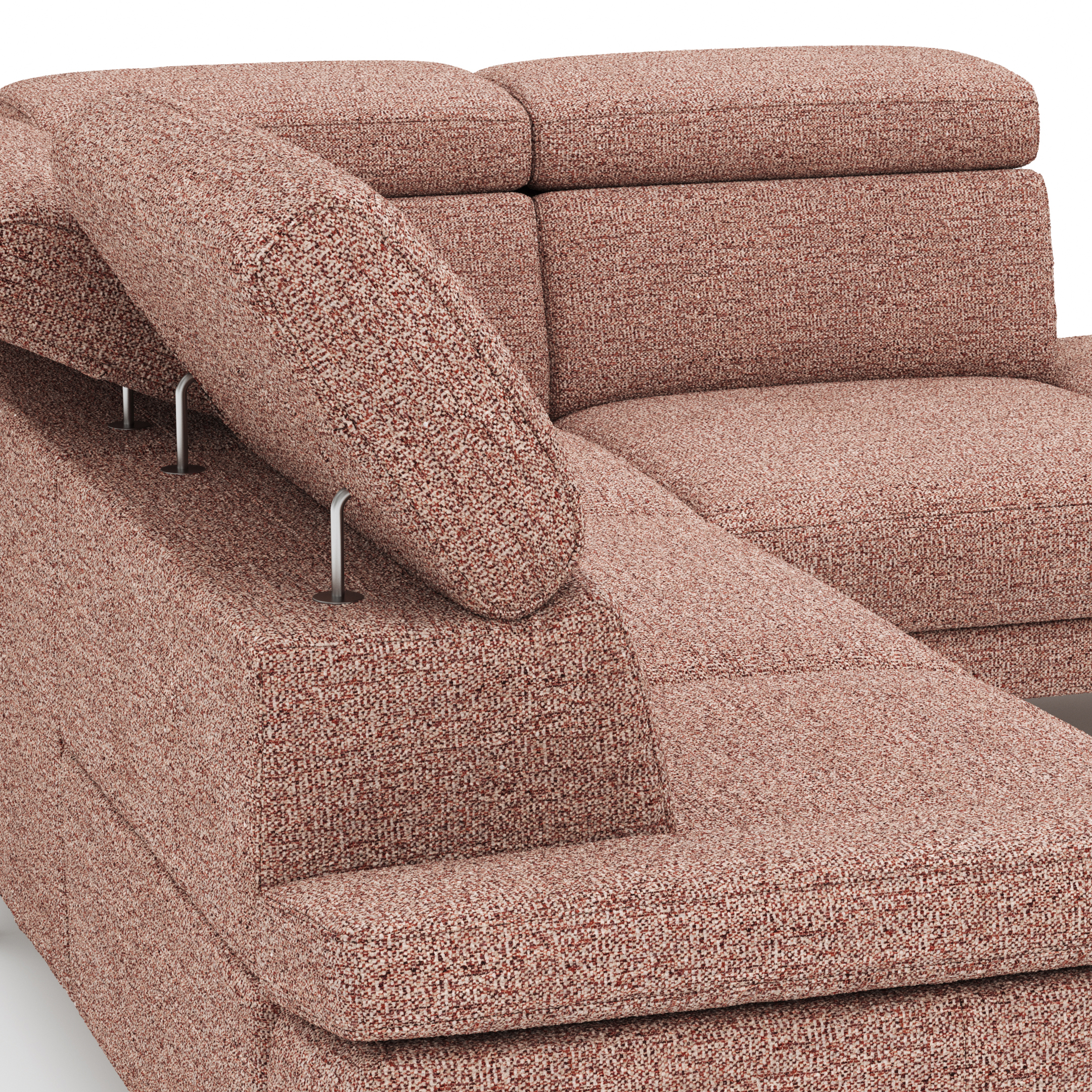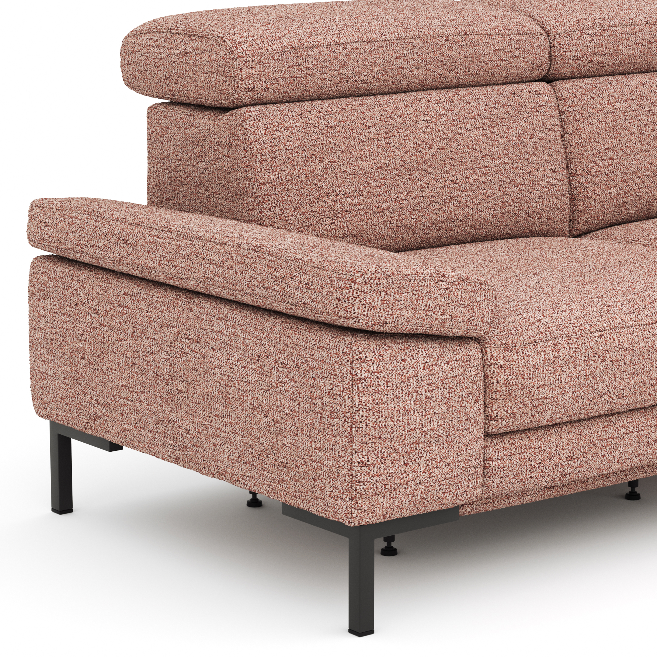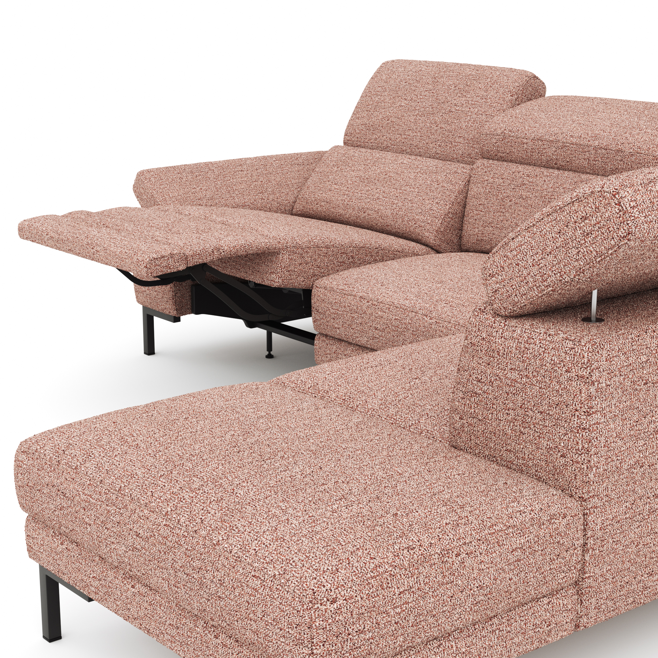 Ecksofa Hudson – 2,5-Sitzer mit Ecke rechts, inkl. Kopfteil/Armlehne verstellbar und Sitzvorzug/Relaxfunktion (motorisch), Stoff, Kupfer