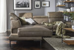 Ecksofa Hudson – Ecke links mit 2,5-Sitzer inkl. Kopfteil/Armlehne verstellbar und Sitzvorzug/Relaxfunktion (motorisch), Leder, Braungrün