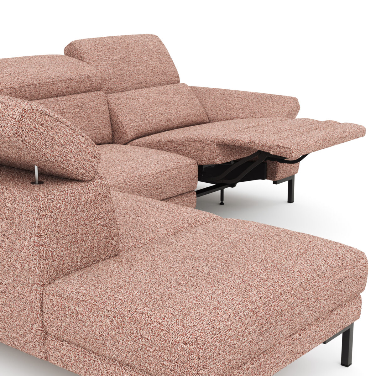 Ecksofa Hudson – Ecke links mit 2,5-Sitzer, inkl. Kopfteil/Armlehne verstellbar und Sitzvorzug/Relaxfunktion (motorisch), Stoff, Kupfer