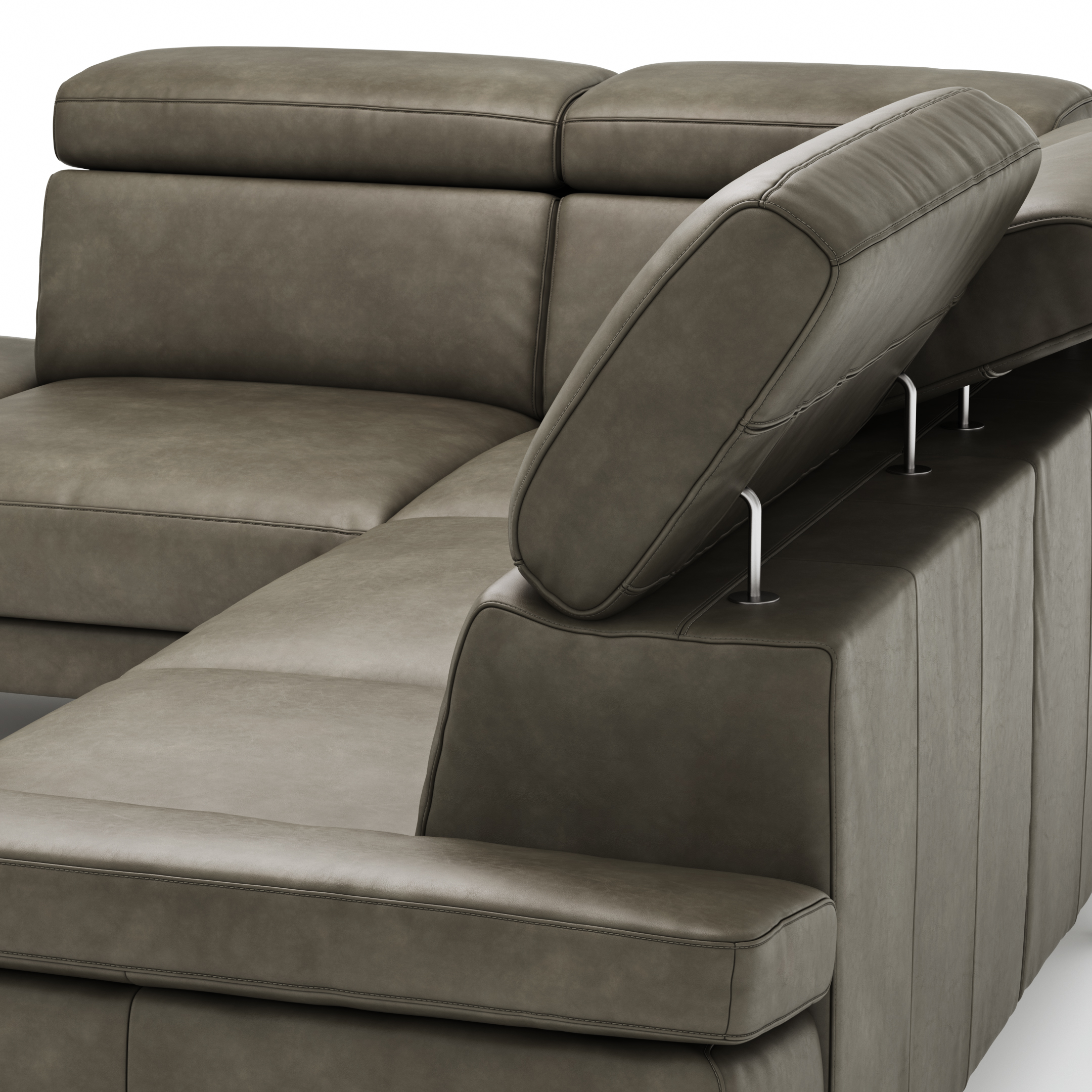 Ecksofa Hudson – Ecke links mit 2,5-Sitzer inkl. Kopfteil verstellbar, Leder, Braungrün