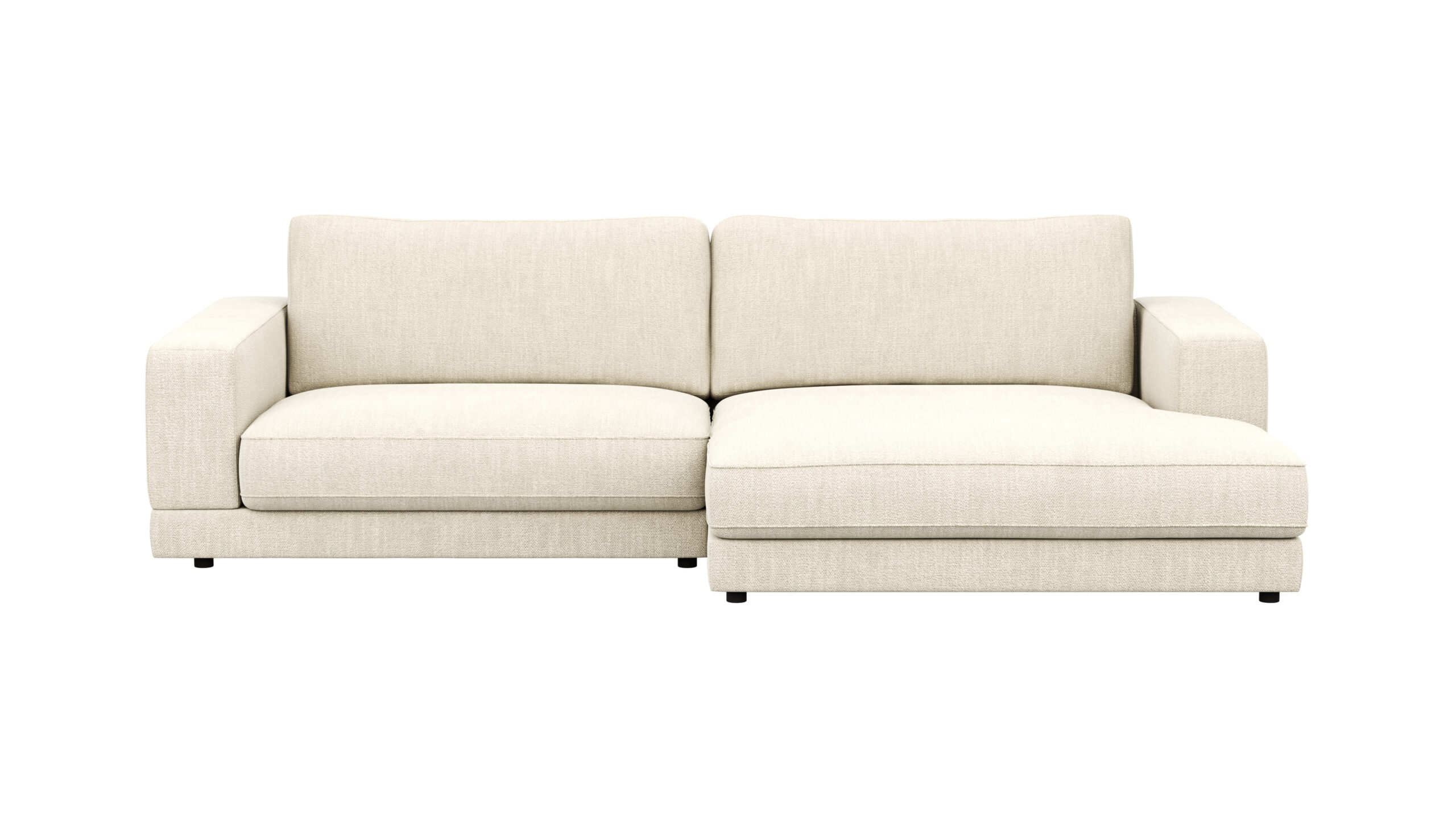 Ecksofa Juni – 1,5-Sitzer mit Longchair rechts, Stoff, Natur