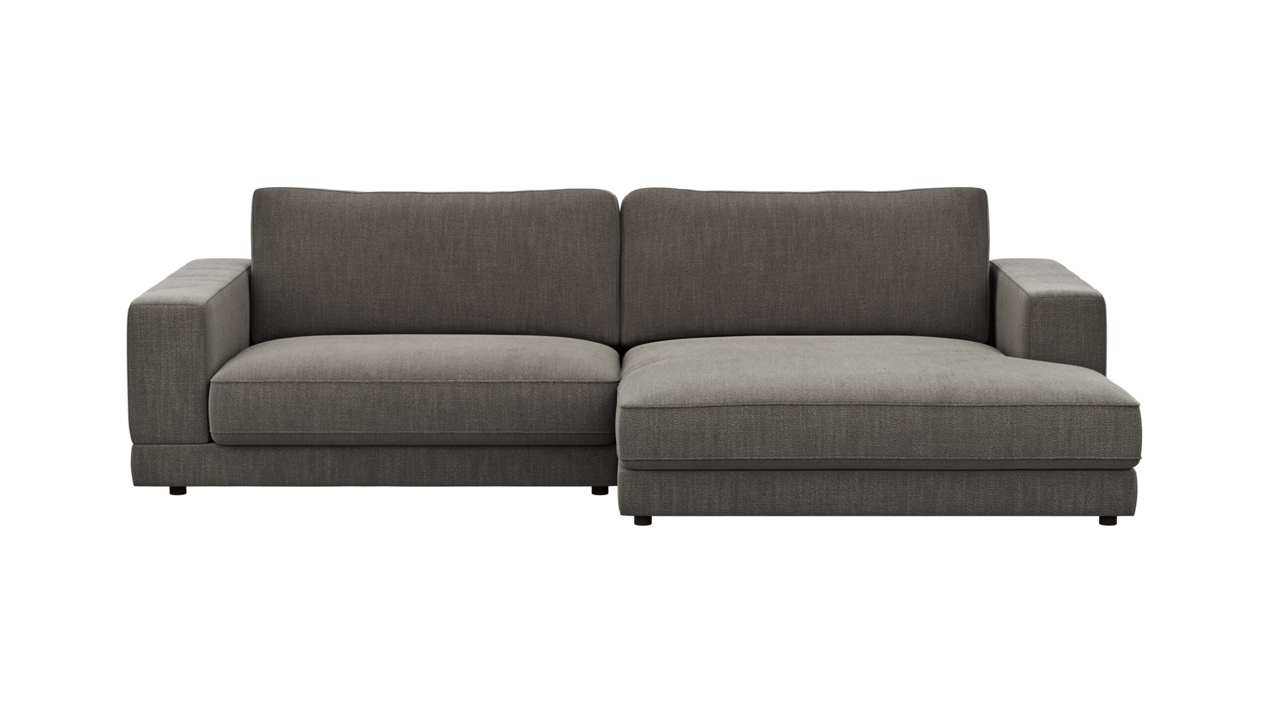 Ecksofa Juni – 1,5-Sitzer mit Longchair rechts, Stoff, Schwarz