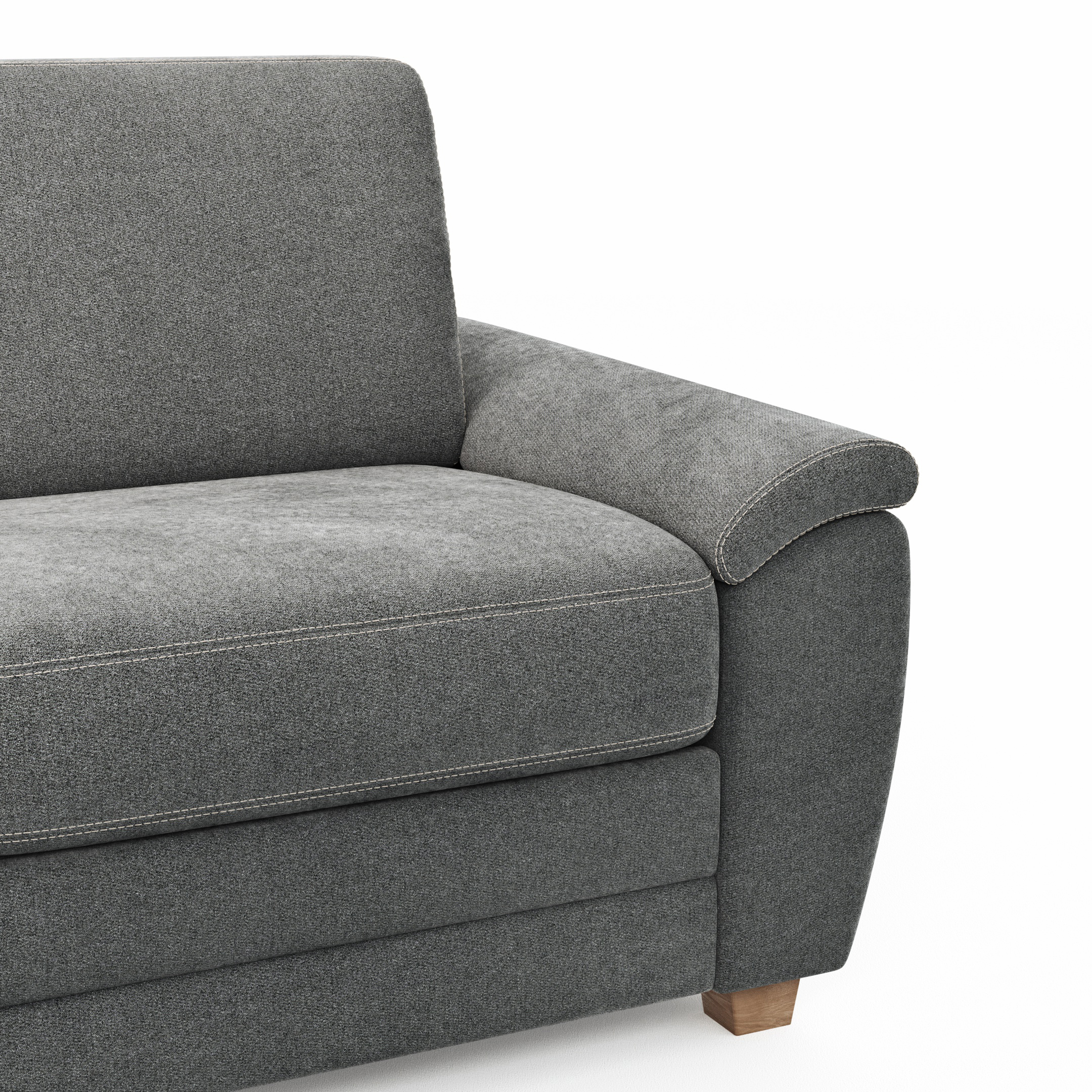 Ecksofa Lakeville – Longchair links mit 2-Sitzer inkl. Schlaffunktion mit Bettkasten, Stoff, Grau