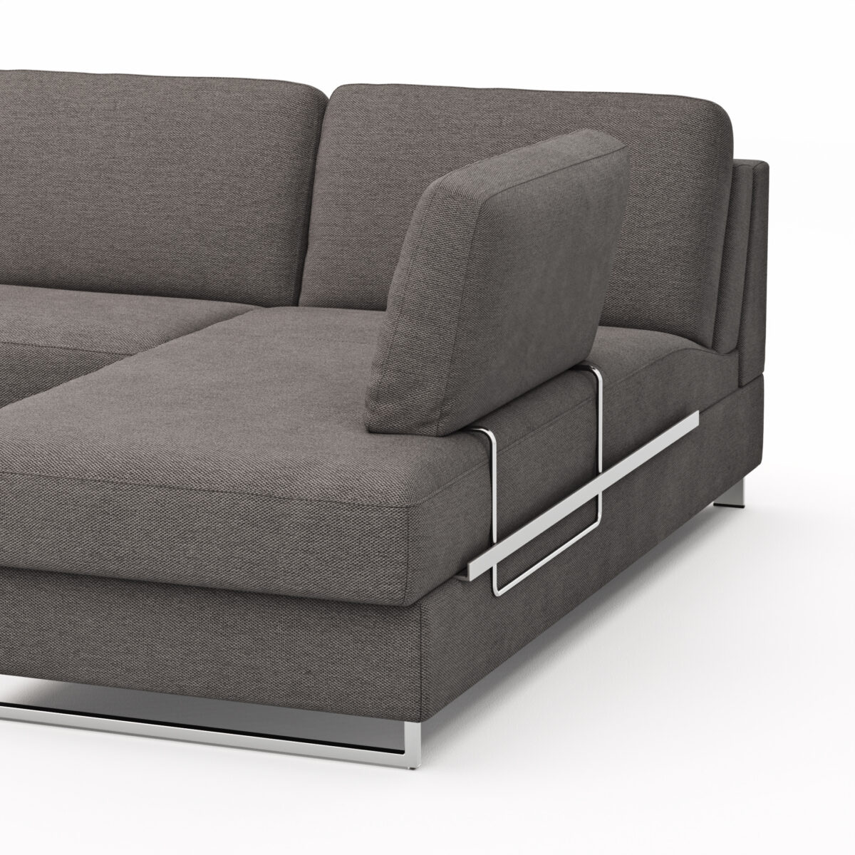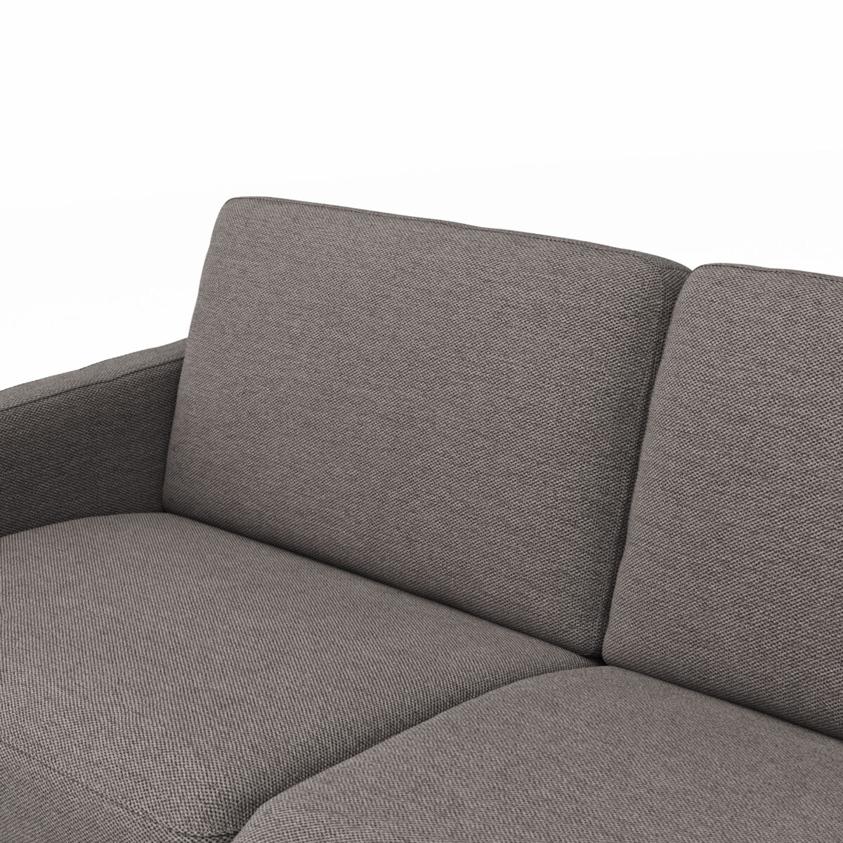 Ecksofa Nuoro – 2-Sitzer mit Longchair rechts inkl. Schlaffunktion und Bettkasten, Stoff, Grau