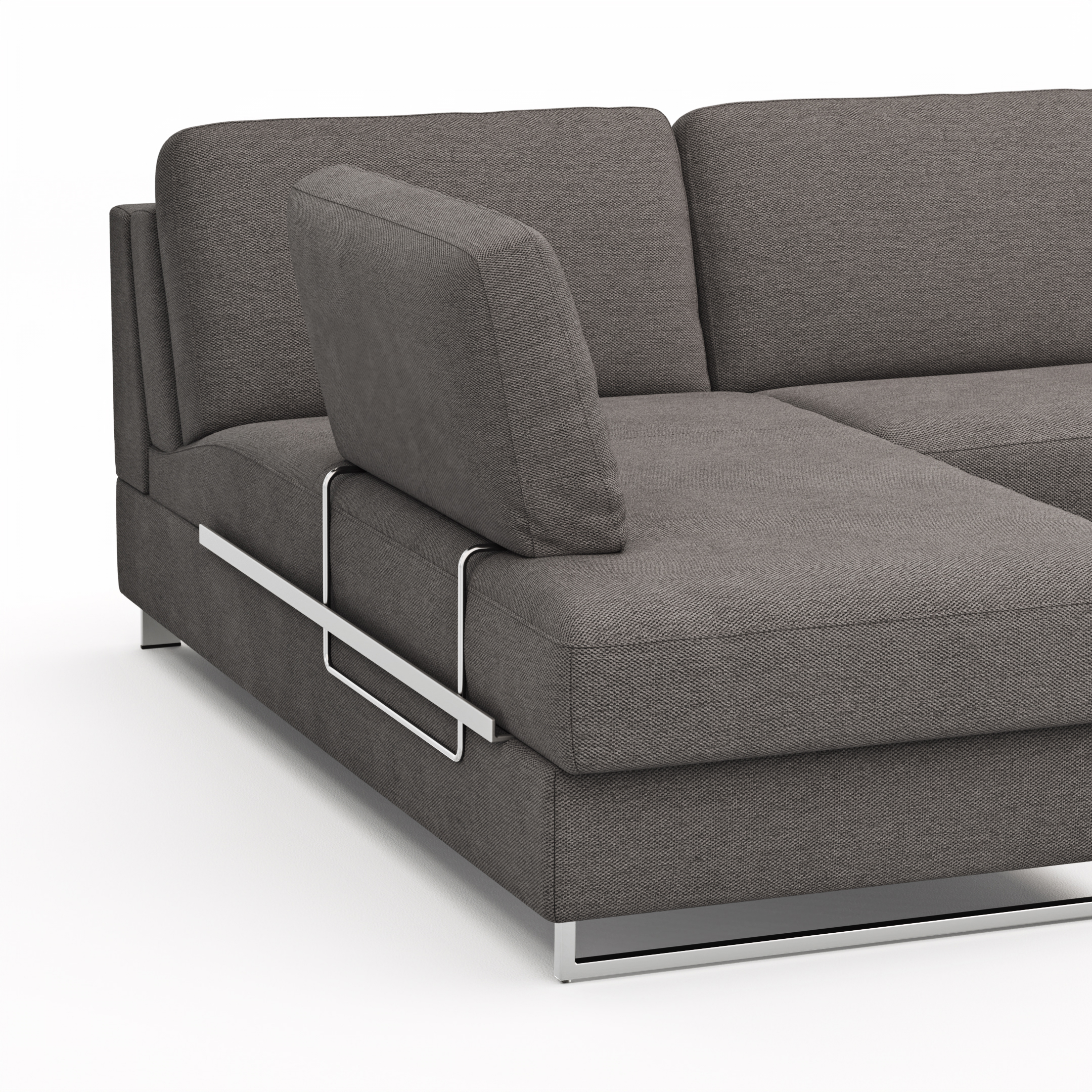 Ecksofa Nuoro – Longchair links mit 2-Sitzer inkl. Schlaffunktion und Bettkasten, Stoff, Grau
