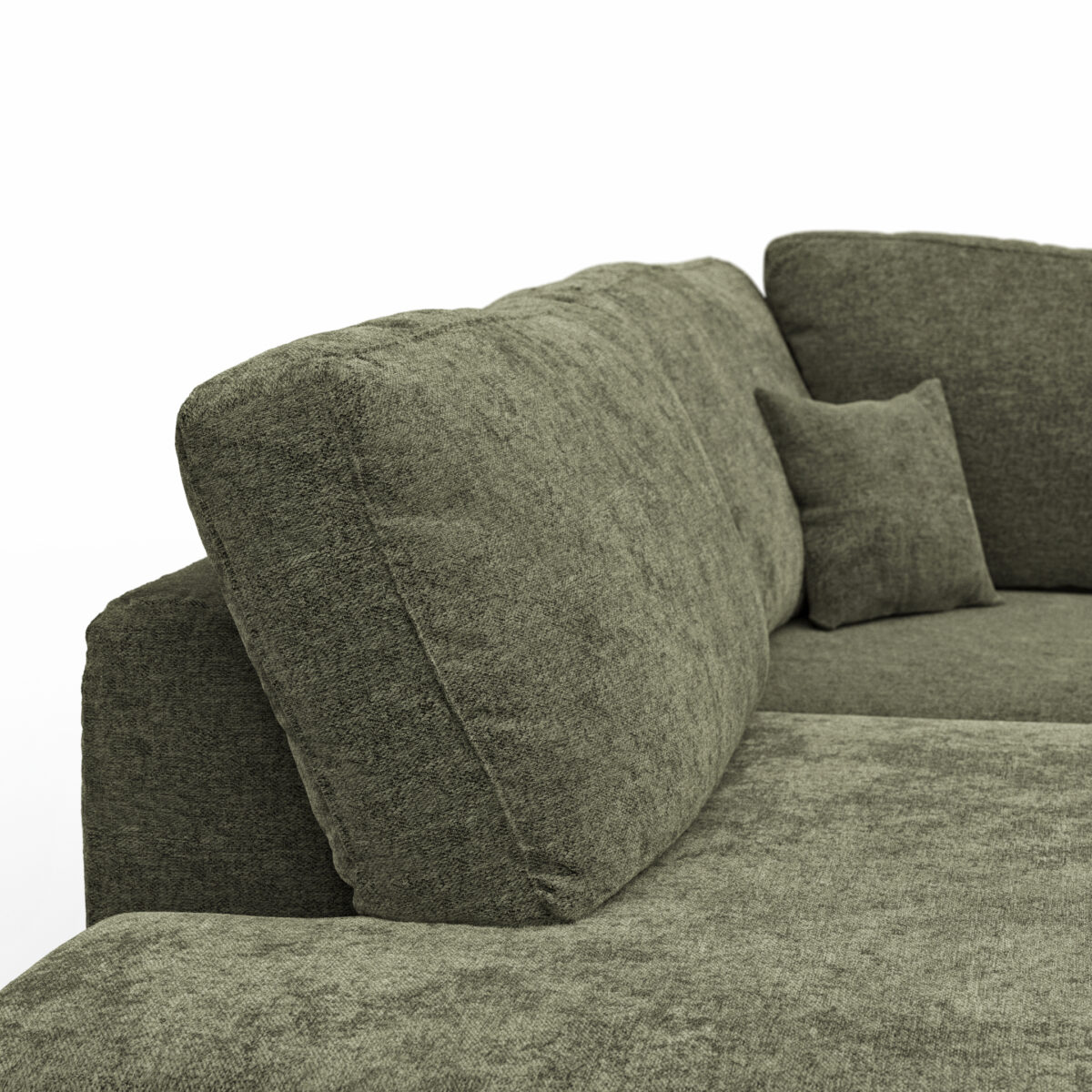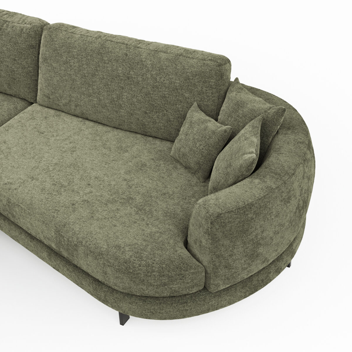 Ecksofa Solenne – Ottomane links mit Diwan rund rechts, Stoff, Olive