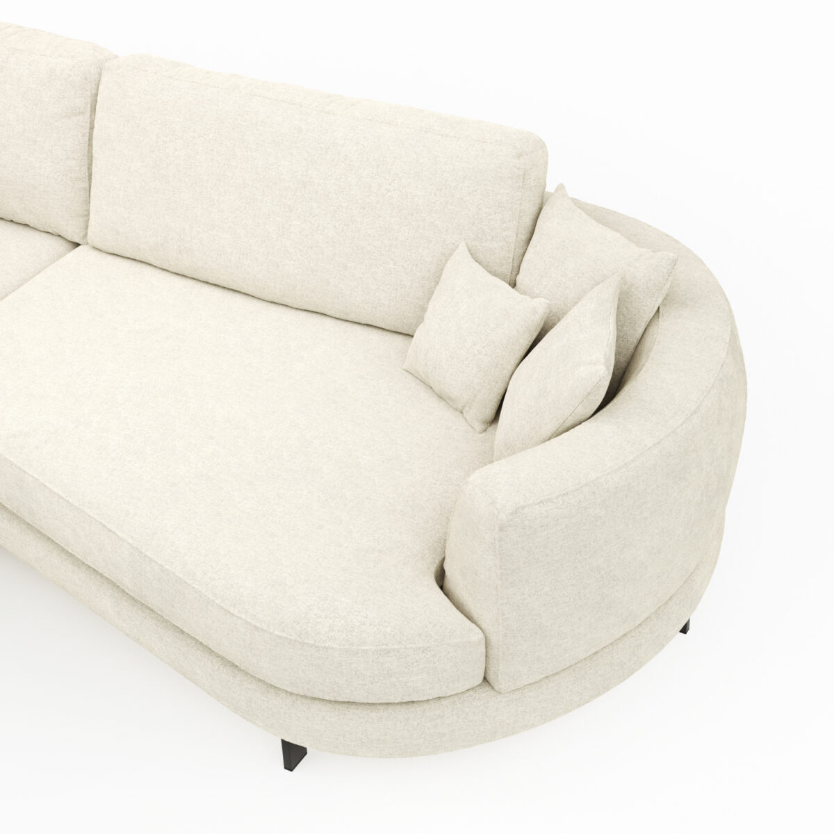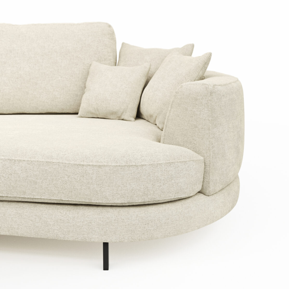 Ecksofa Solenne – Ottomane links mit Diwan rund rechts, Stoff, Weiß