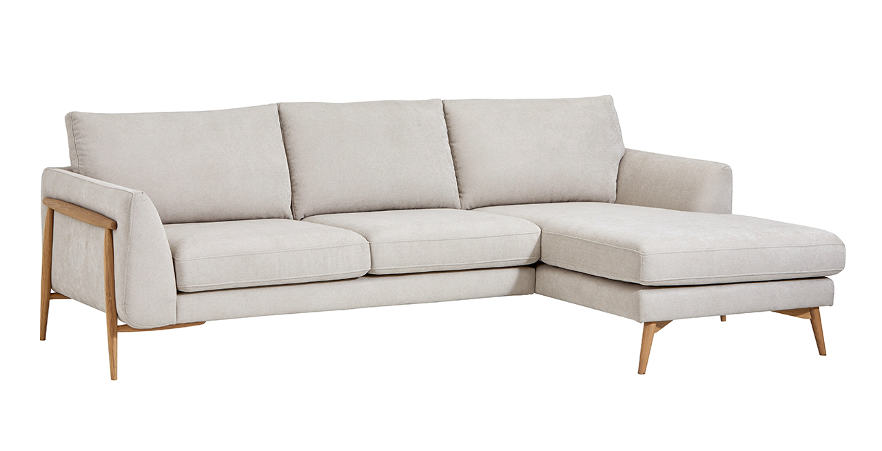 Ecksofa Sutton – 2-Sitzer mit Longchair rechts, Stoff, Beige