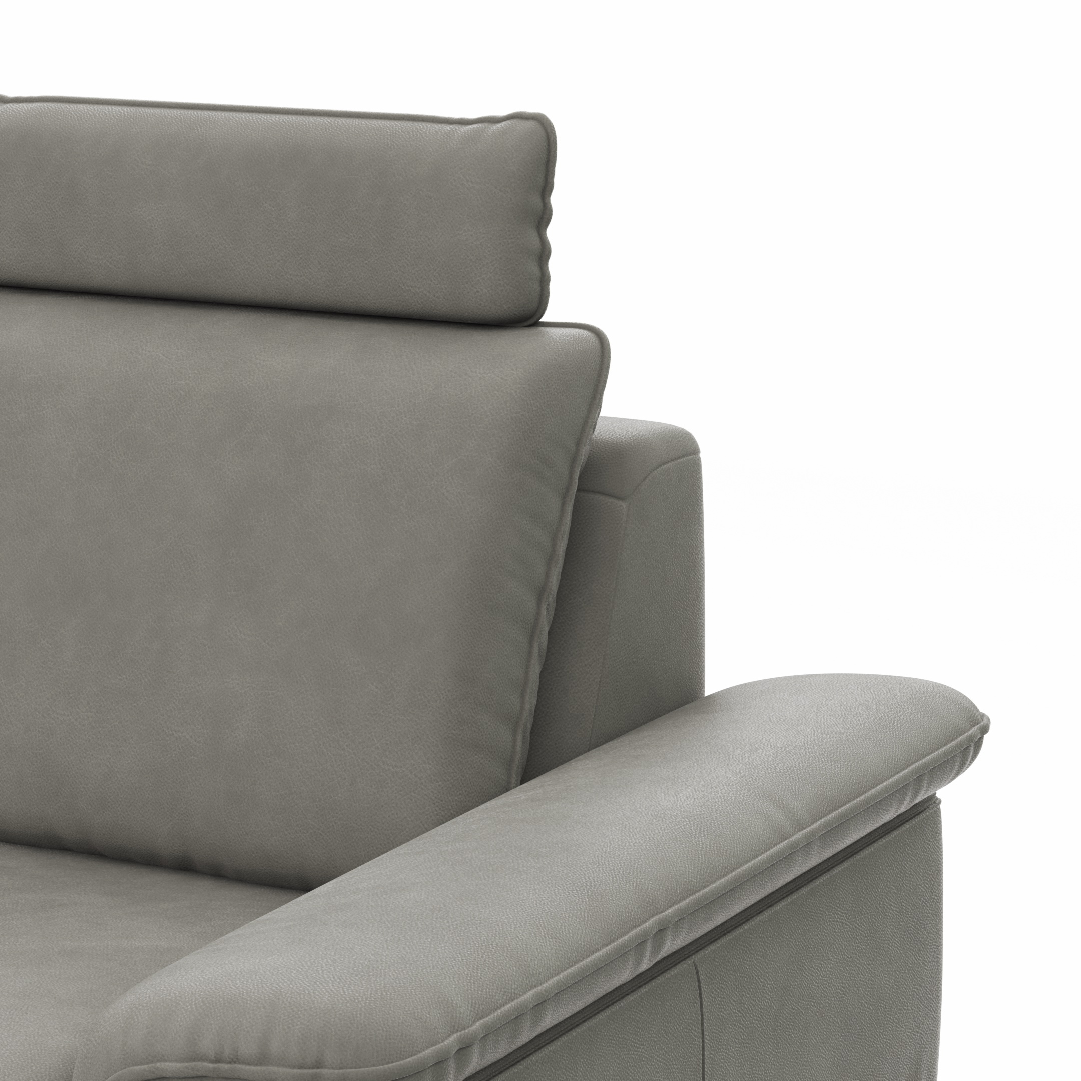 Ecksofa Tulsa KS – 1,5-Sitzer mit Anstellhocker aufklappbar links, Spitzecke und 2,5-Sitzer rechts, inkl. Kopfstütze, AL verstellbar und Schlaffunktion, Leder, Graubeige