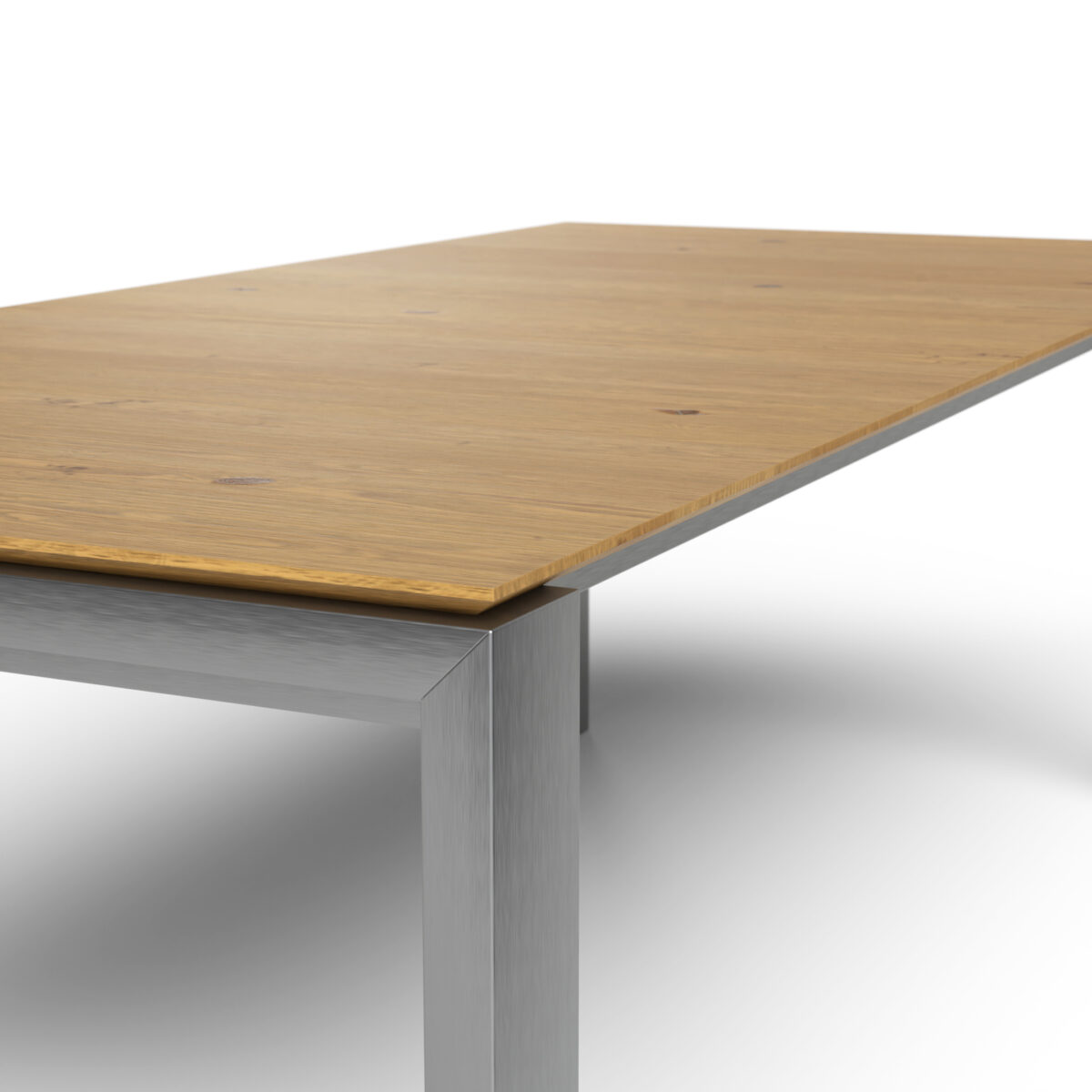 Esstisch 3400 – LB ca. 220×100 cm, ausziehbar, Asteiche massiv, Fuß Edelstahl